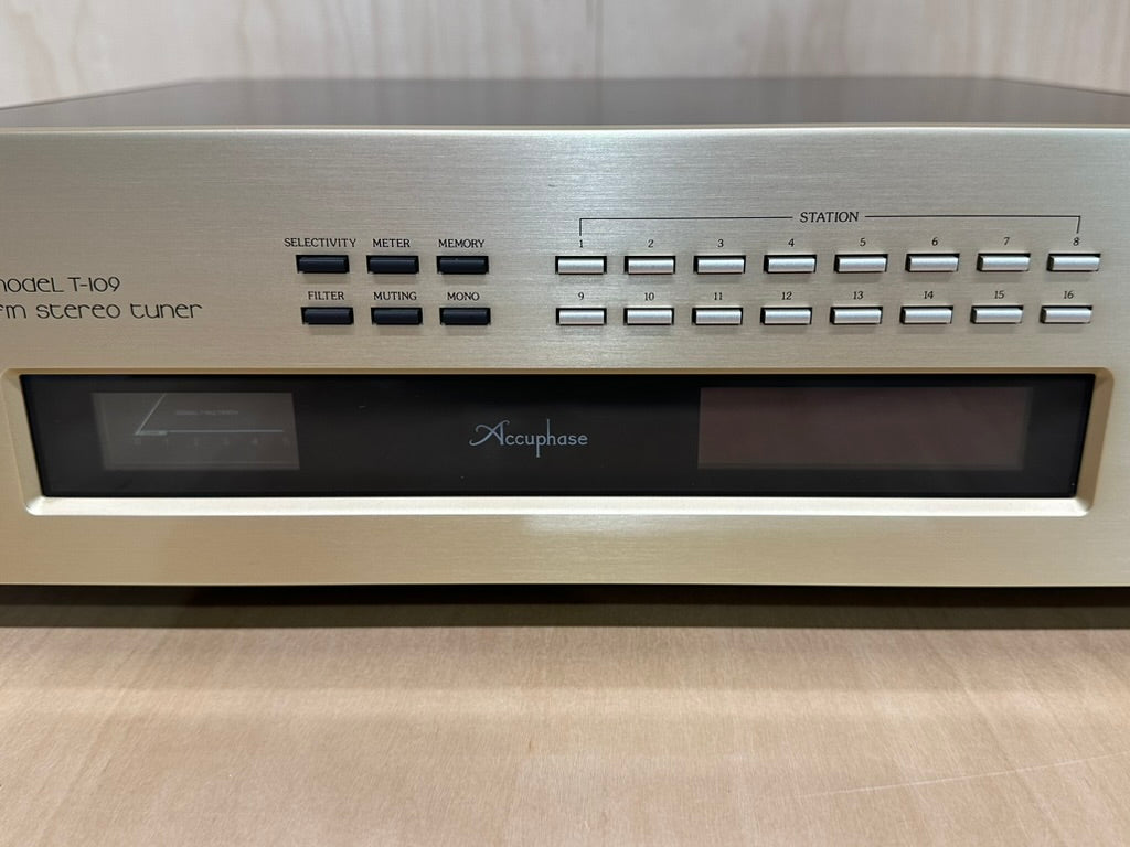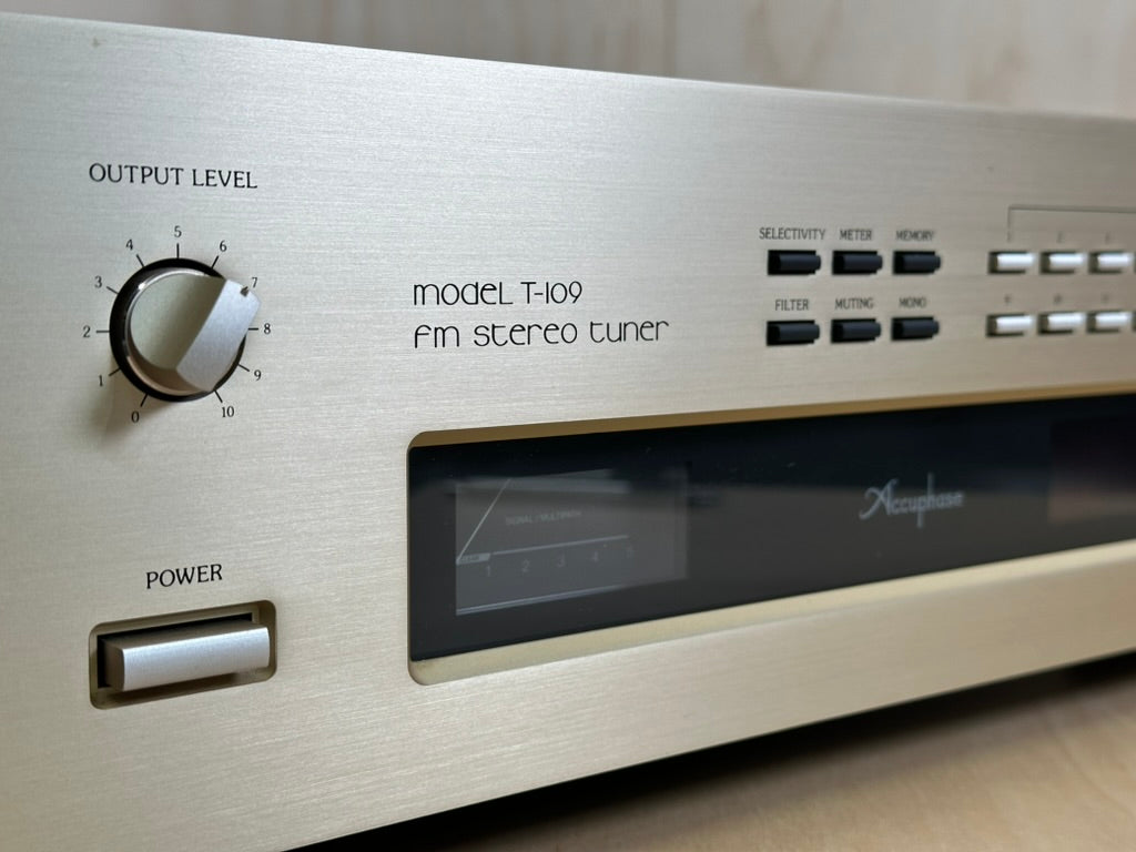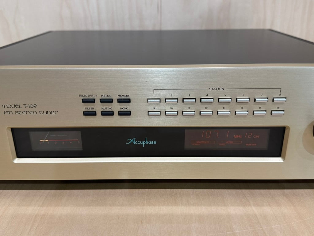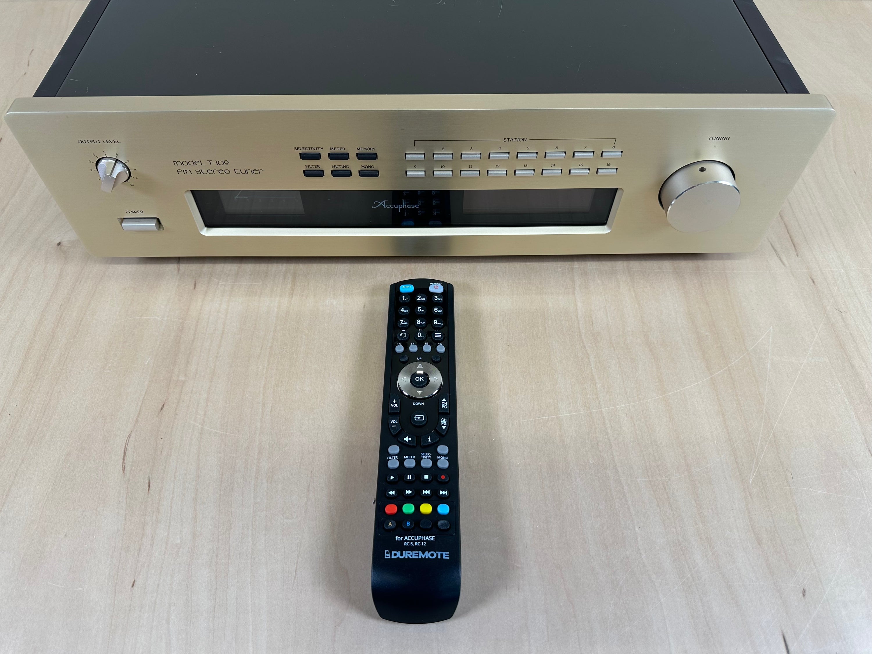 For sale, we have an amazing Accuphase Model T-109 FM Stereo Tuner. A wonderful sounding tuner in perfect working order, and includes a fully functional aftermarket remote control. This is the first Accuphase tuner that we have taken into our shop, and we did not want to part with it. It spent over a month in our house system, where we listen to FM radio on a daily basis. Being in the NY Metropolitan area, we have many great stations within our reach.