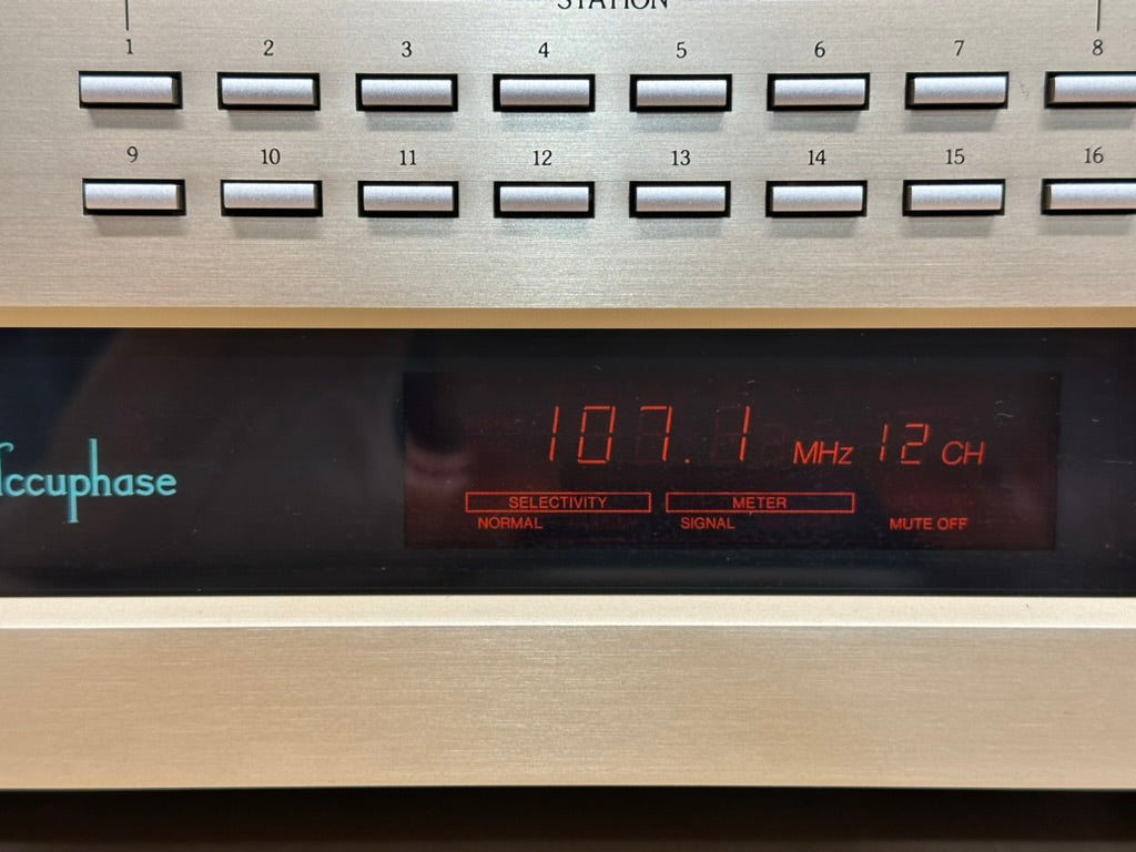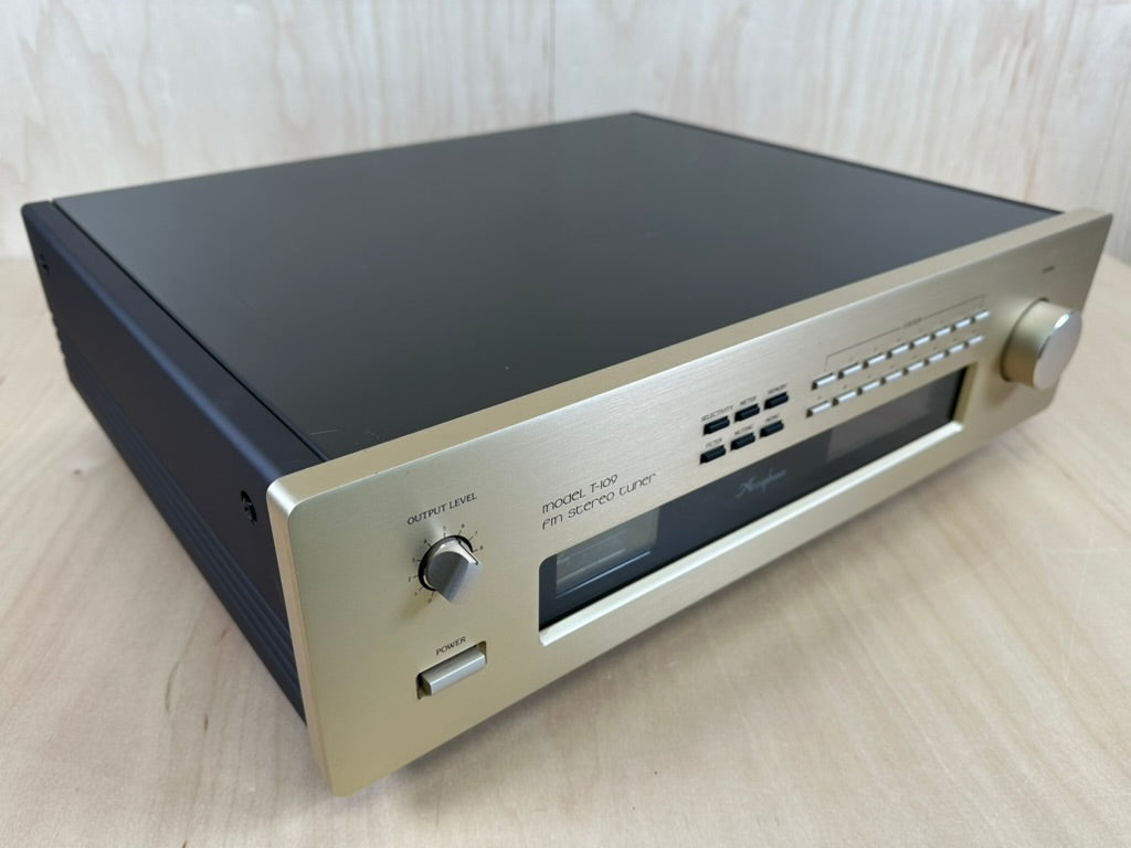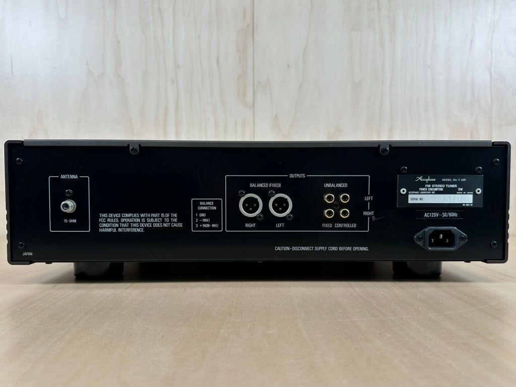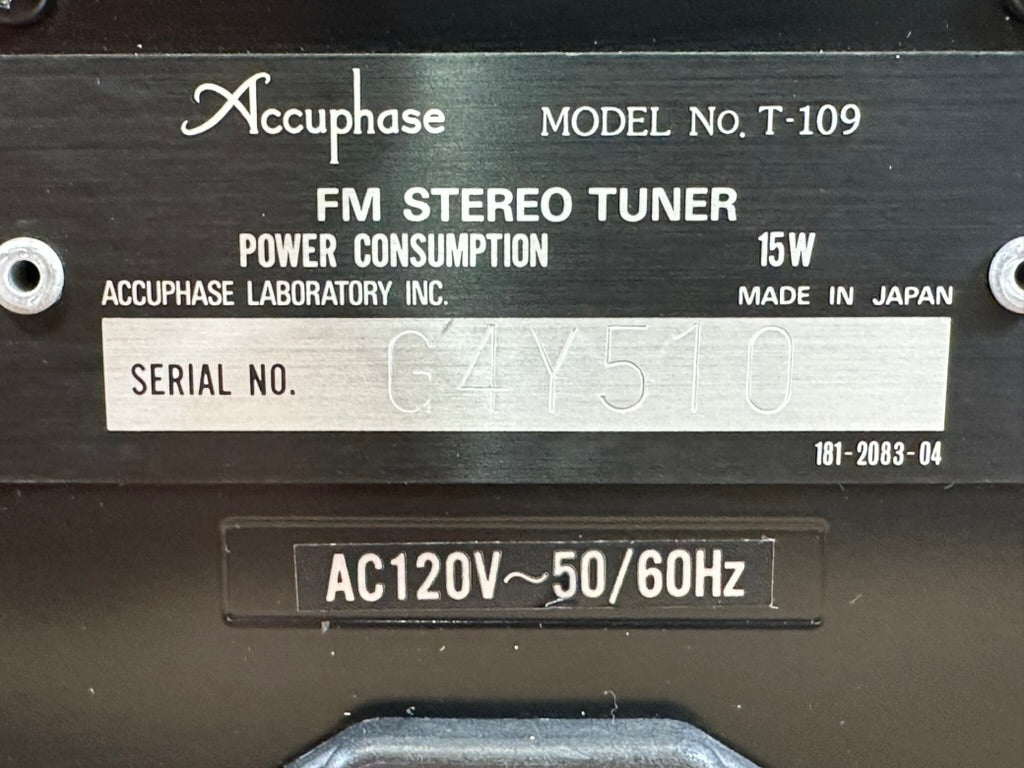 For sale, we have an amazing Accuphase Model T-109 FM Stereo Tuner. A wonderful sounding tuner in perfect working order, and includes a fully functional aftermarket remote control. This is the first Accuphase tuner that we have taken into our shop, and we did not want to part with it. It spent over a month in our house system, where we listen to FM radio on a daily basis. Being in the NY Metropolitan area, we have many great stations within our reach.