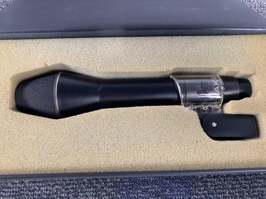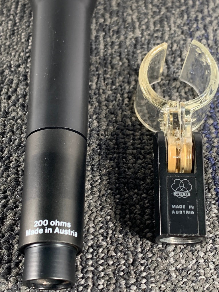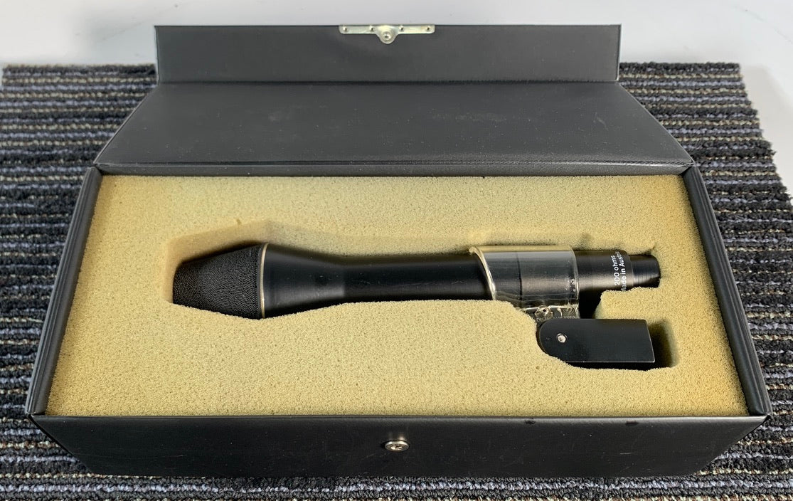 For your consideration, we have a vintage AKG D222 microphone for sale. It comes from a private studio of a good friend of ours. We are selling multiple Mics and other pro audio gear from his studio. Known as the "Sound Rocket", the AKG D222 is a dynamic cardioid microphone containing two elements, one for the high frequencies, placed closest to the front, and a second one for the low frequencies, behind the first, facing backwards.
