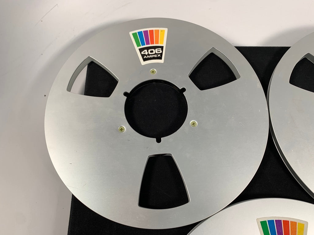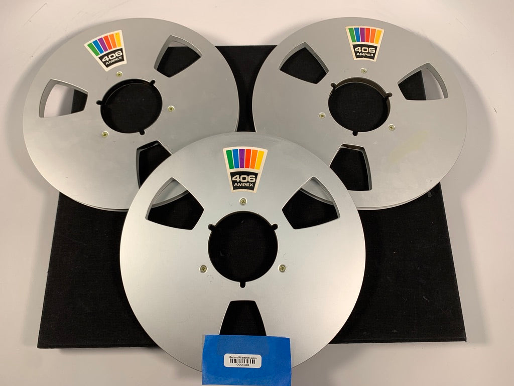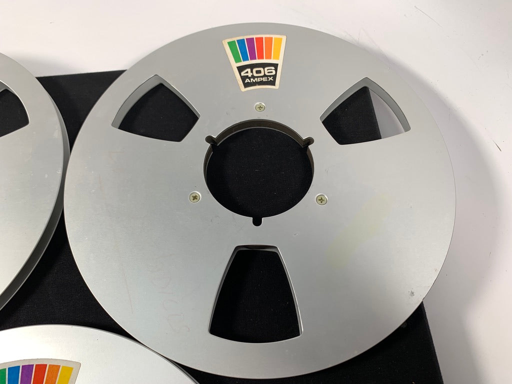 For your consideration, we have 3 vintage AMPEX 406 10.5" Metal Tape Reels for 1/4" Tape. The reels are used but in very good condition. Photos show both front and back of each unit.
