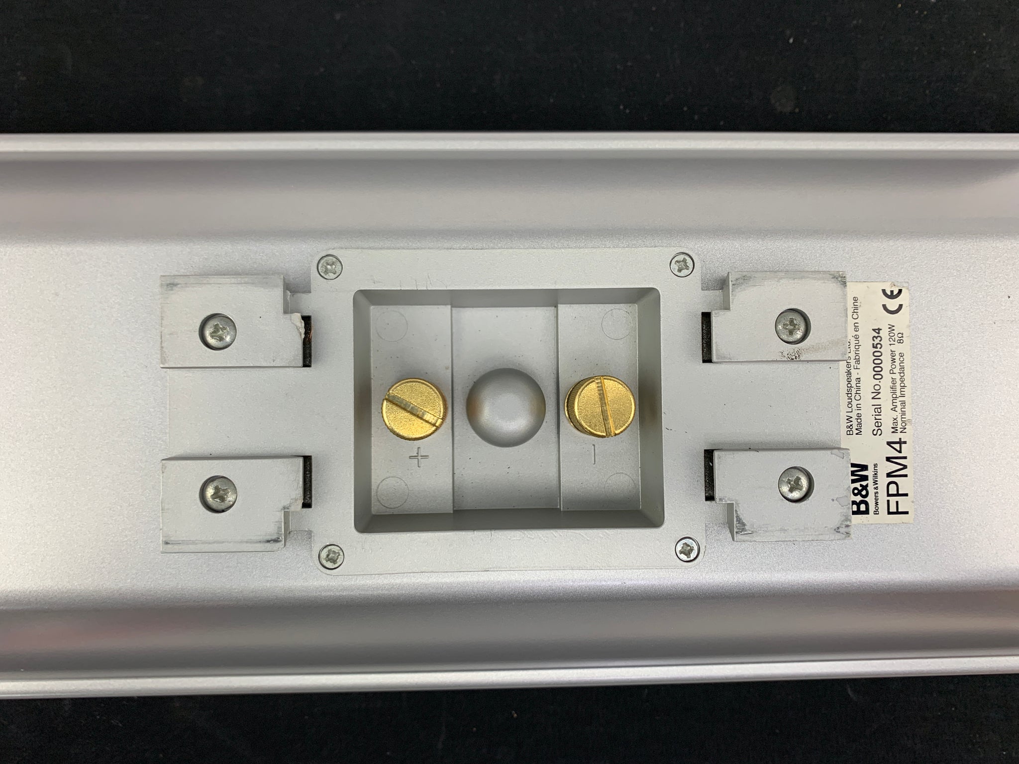 For sale is one B&W FPM4 Wall mount speaker. Drivers are in excellent working and physical condition. The Grill has a small tear in the bottom left corner as seen in the picture, but it's not really noticeable unless you look closely. There are some scuffs on the sides an back but again, not really noticeable from a short distance away. The metal magnetic trim piece is in excellent condition. The unit will ship in an OEM B&W box.