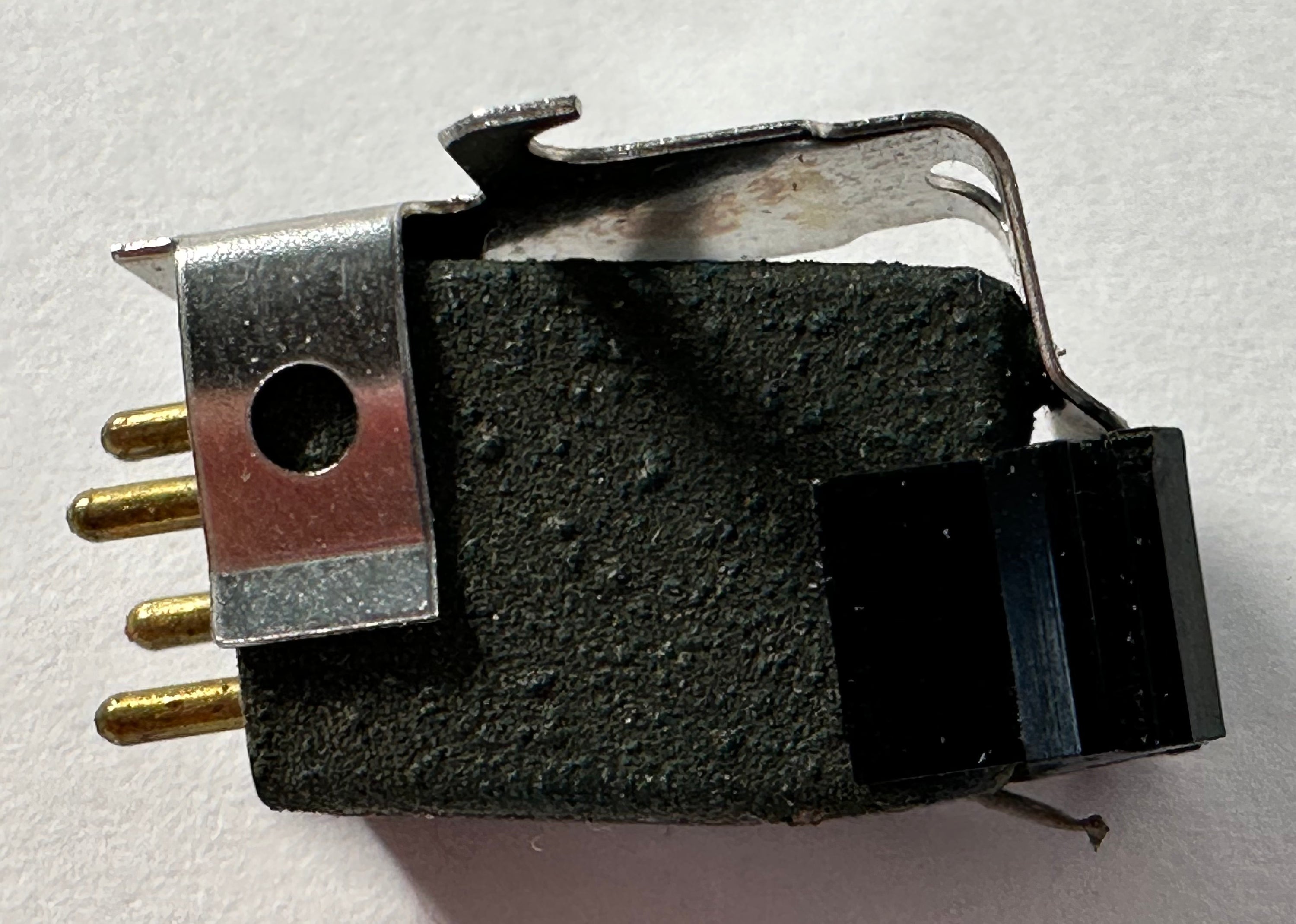Up for sale is a used Shure M91E Phono cartridge with its Hi-Track Stylus. The item was fully tested, and is in good working order. The stylus is in good condition, and photos taken under our microscope are in the listing. The Cartridge's Left channel impedance measured 605.0 ohms, and the Right channel measured 603.9 ohms. While we don't have the original packing, we will ship the unit in a custom box for safe travel.