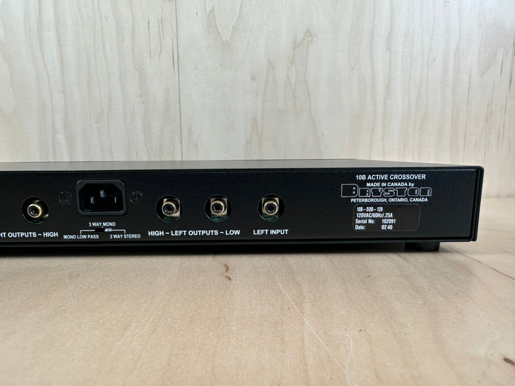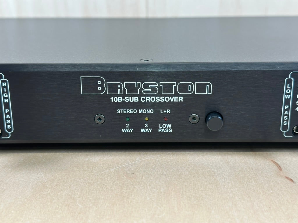 For your consideration, we have a one owner Bryston 10B-SUB Crossover for sale. The 10B-Sub is Bryston's active crossover designed for satellite/subwoofer installations using 6/12/18dB Butterworth filters. The unit is in perfect working order. We cleaned and then treated all the pots and switches with the appropriate Deoxit. The 10B has been fully tested on our bench by running 1K and 10K square waves through the unit. Both channels matched identically on the scope.