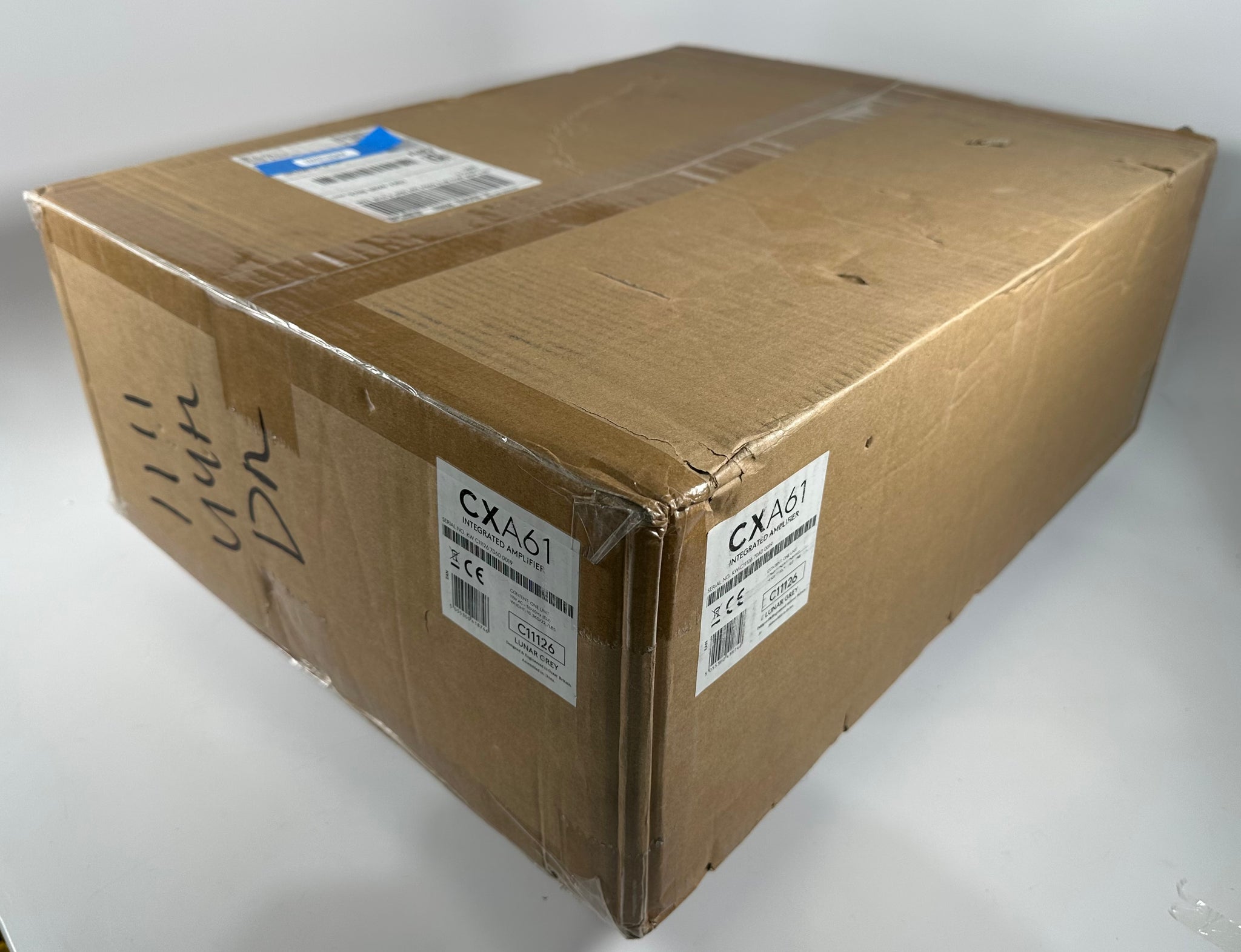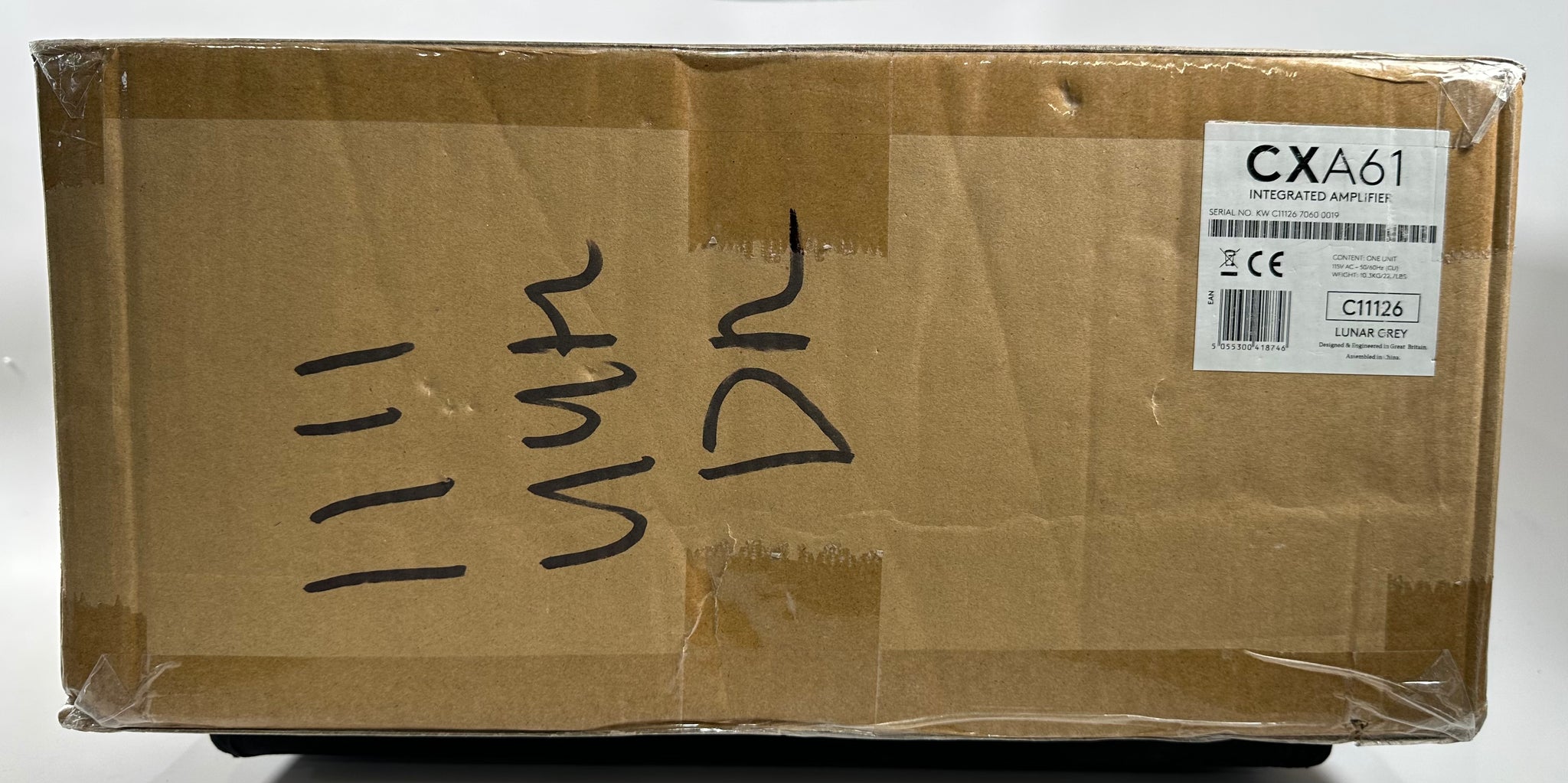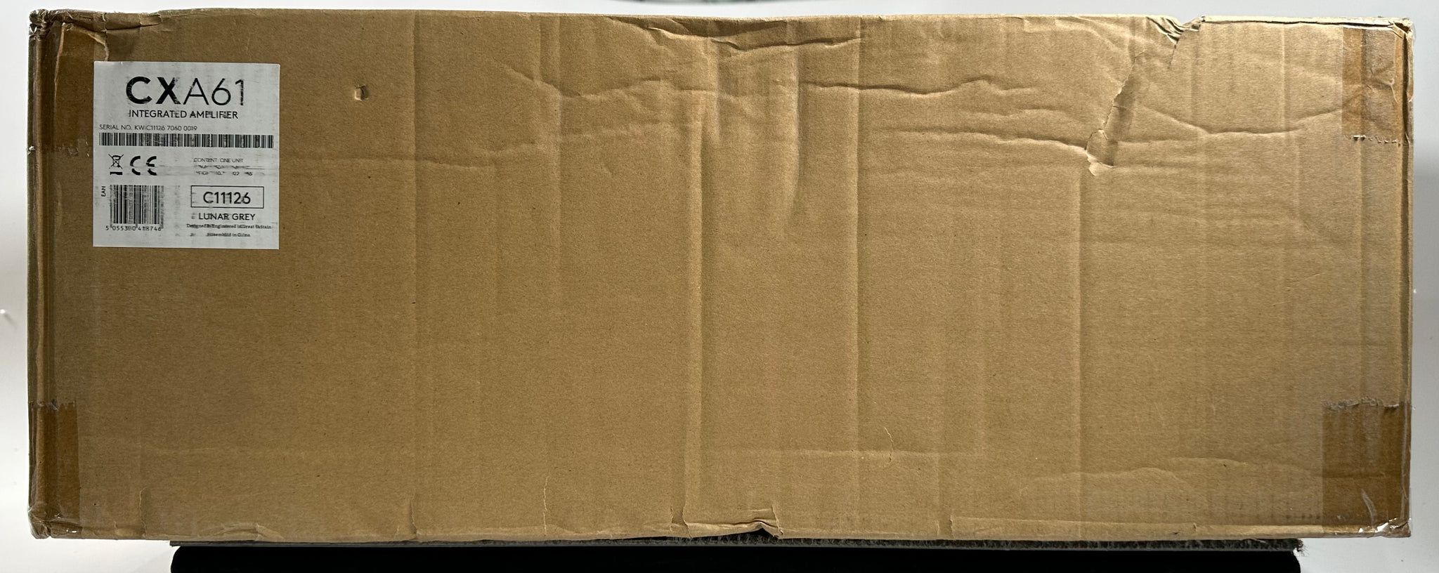 For sale, we have the well reviewed Cambridge Audio CX A61 Integrated amplifier in Lunar Grey. It is brand new in its original sealed box. We obtained this unit and several other audio components new in their boxes from a client that purchased them, and then decided to move overseas before using them. Photos are of the unit in its box. There are three stock photos from the Cambridge Audio website in the listing as well.