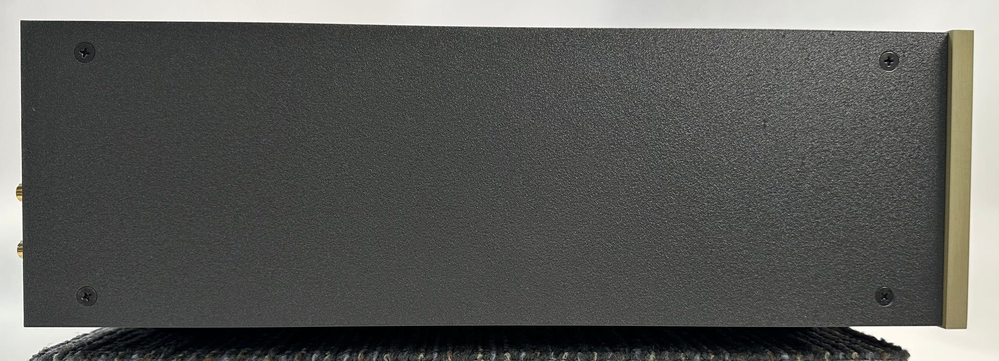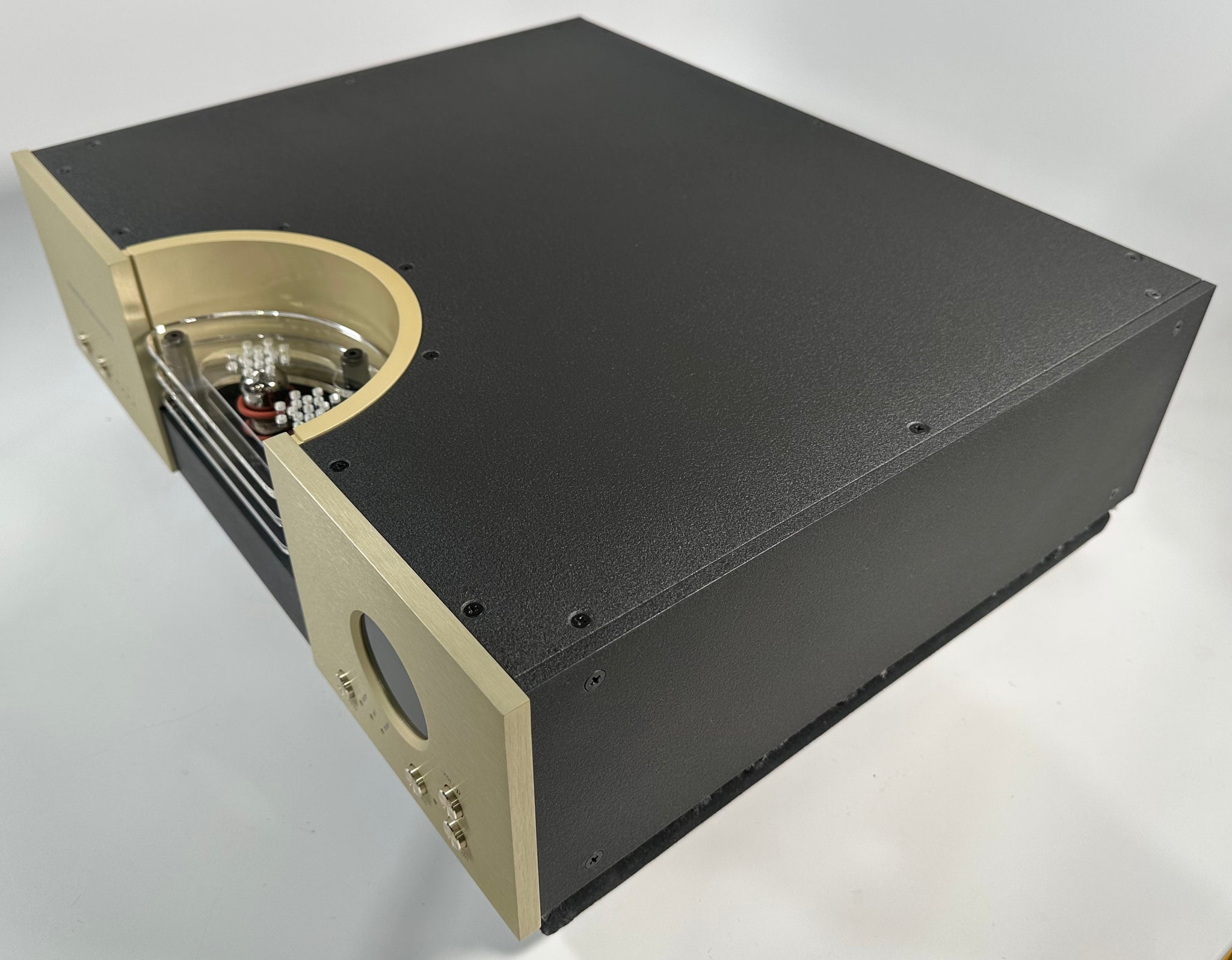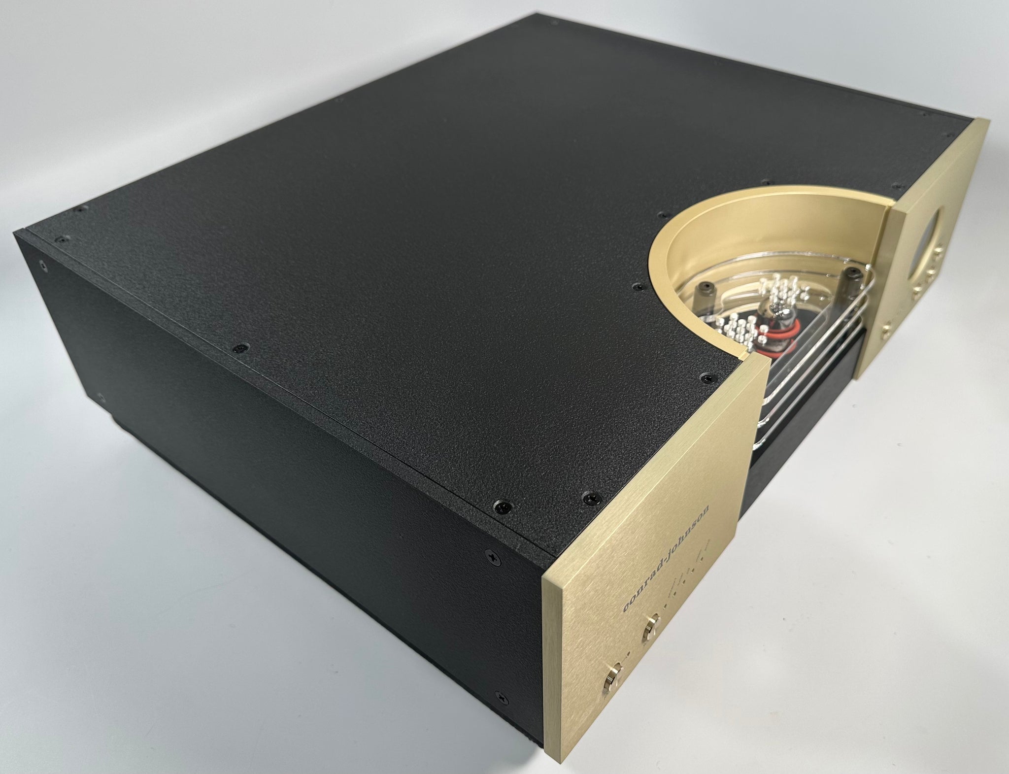 The same CJD Teflon capacitors that distinguish the ACT2 are used in the CT5 for output coupling and post-regulator power supply storage. All other capacitors in the audio circuits and related power supplies are polypropylene or polystyrene, and the resistors in these circuits (including the level control) are special low inductance, high-precision laser-trimmed metal foil resistors. Switches are sealed relays with gold-plated silver contacts. Input and output connectors are premium quality custom machined parts.