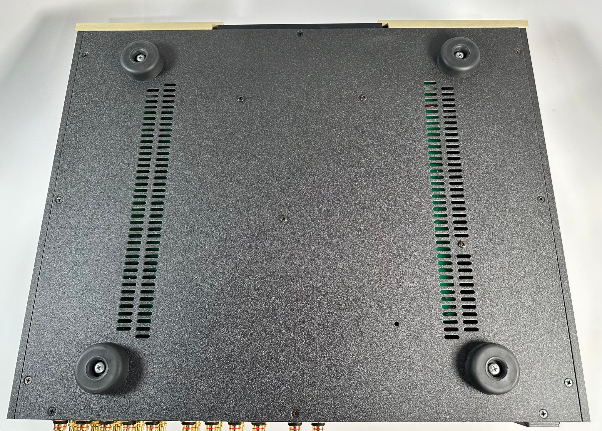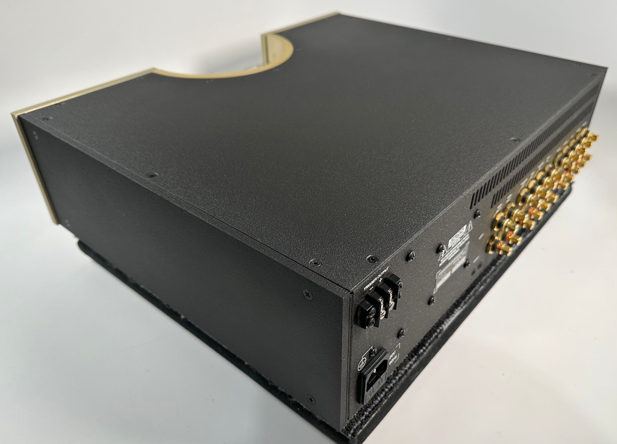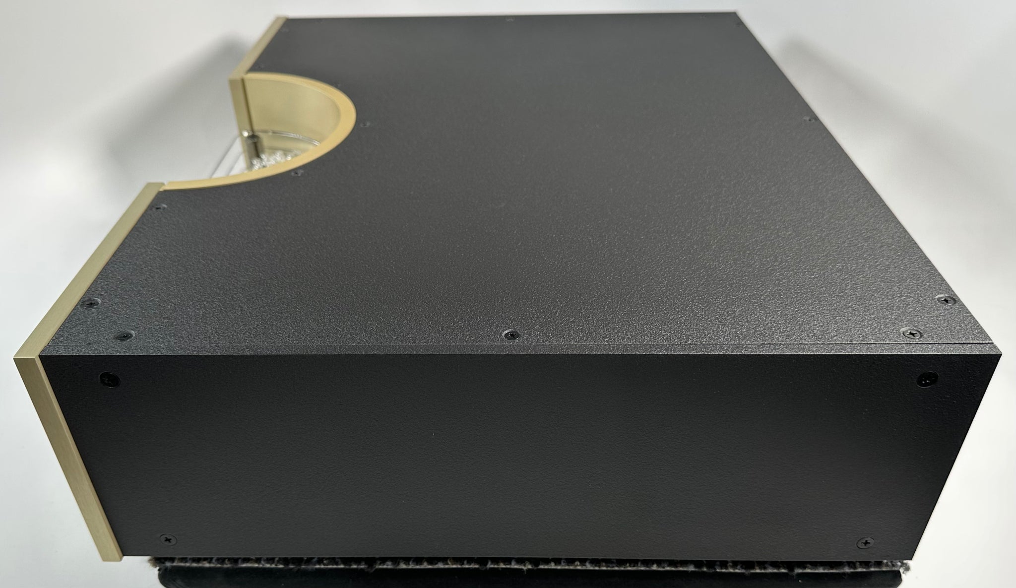 The same CJD Teflon capacitors that distinguish the ACT2 are used in the CT5 for output coupling and post-regulator power supply storage. All other capacitors in the audio circuits and related power supplies are polypropylene or polystyrene, and the resistors in these circuits (including the level control) are special low inductance, high-precision laser-trimmed metal foil resistors. Switches are sealed relays with gold-plated silver contacts. Input and output connectors are premium quality custom machined parts.