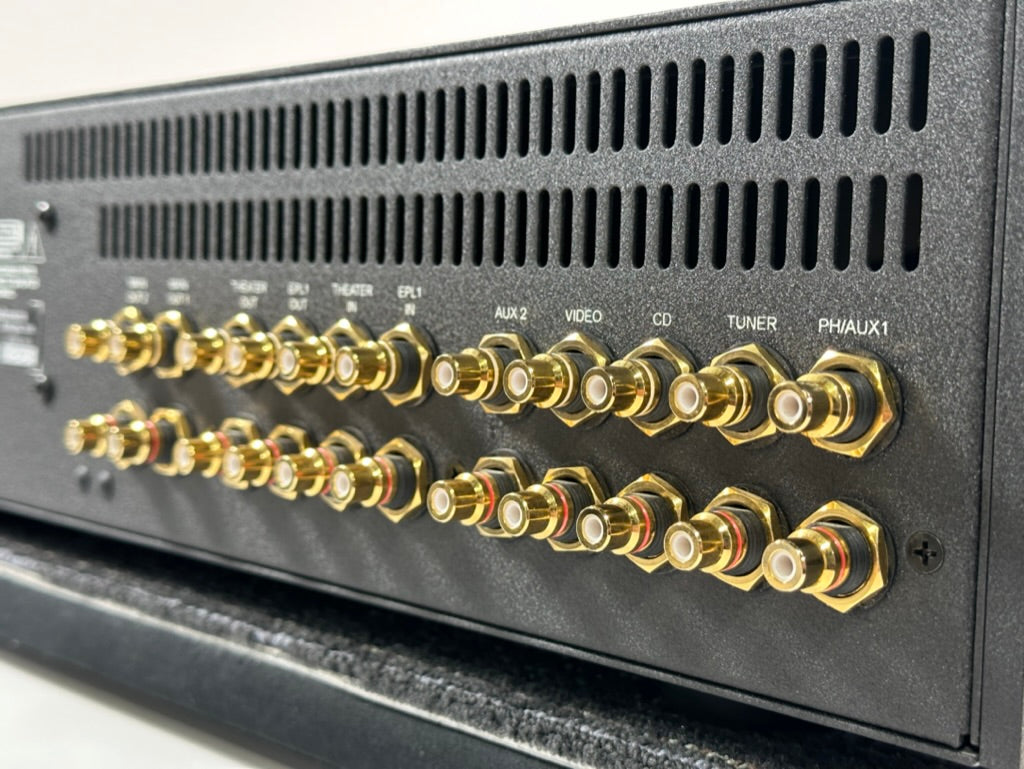 For the level control, the relays select combinations from a network of precision, low-noise metal foil resistors to effect loudness and balance changes in 100 steps of approximately .7dB per step. All switching and adjustment can be controlled by the unit’s remote control. A Theater mode, which passes the input signal through at unity gain, makes it simple to incorporate the CT5 into a high quality home theater system without compromising its two-channel performance.