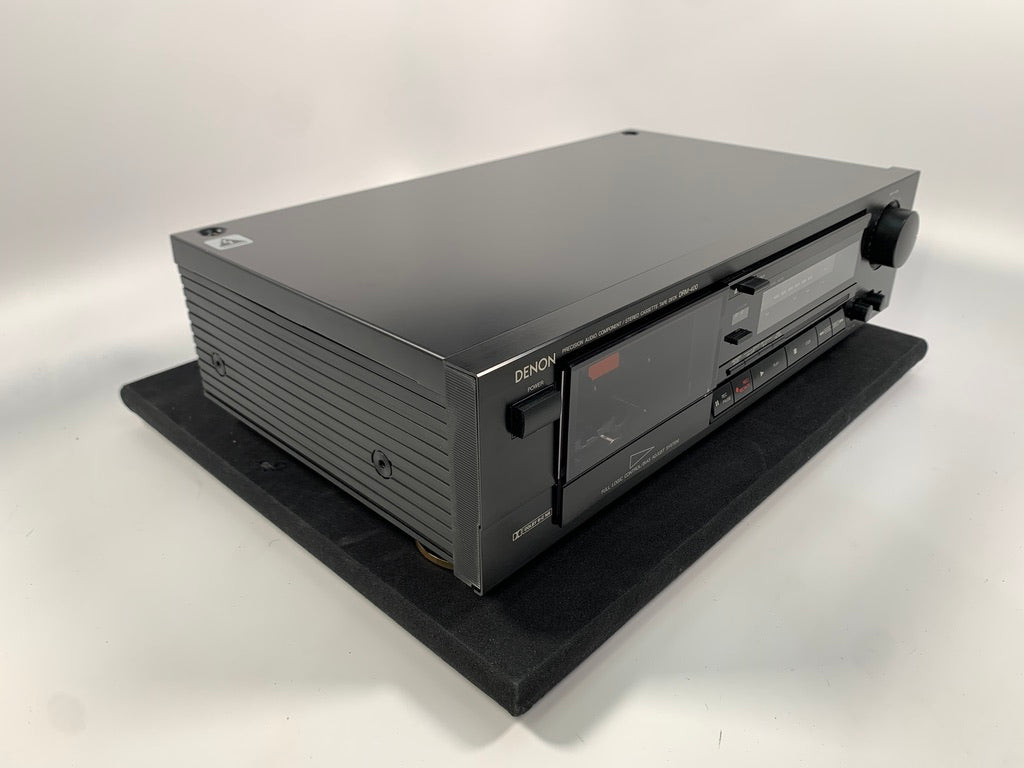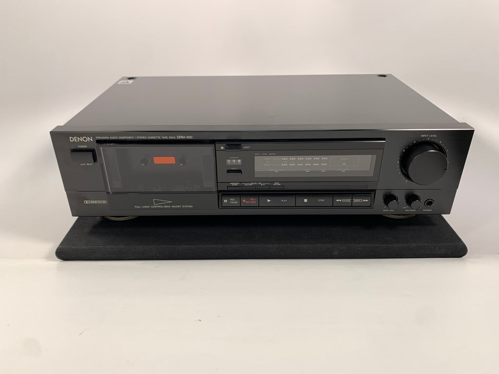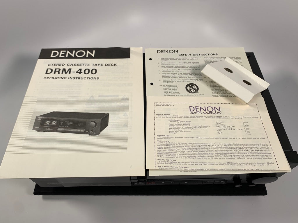 Here we have a Denon DRM-400 Stereo Cassette Tape Deck, in near mint physical condition, and in good working condition. The unit was looked over, bench tested, and cleaned. The switch and controls were cleaned and lubricated. Unit comes in it's original packaging, the owner's manual is also included.