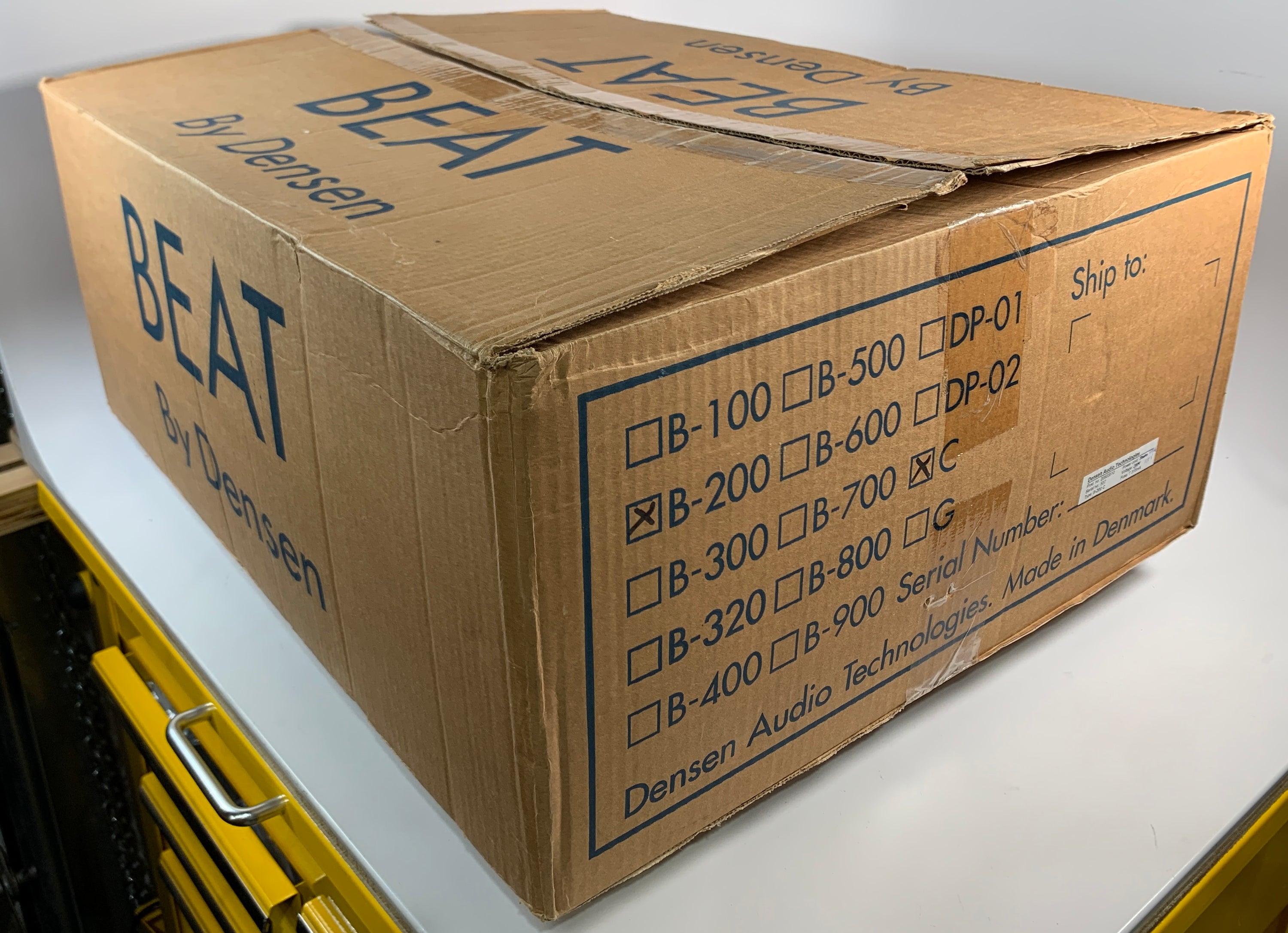 We take our packing process seriously, and the B-200 will be shipped in it's original double box, and then put into a third heavy duty box in order to help preserve the originals, and for added protection during shipping. Water activated, fiber reinforced tape will be used on all seams.