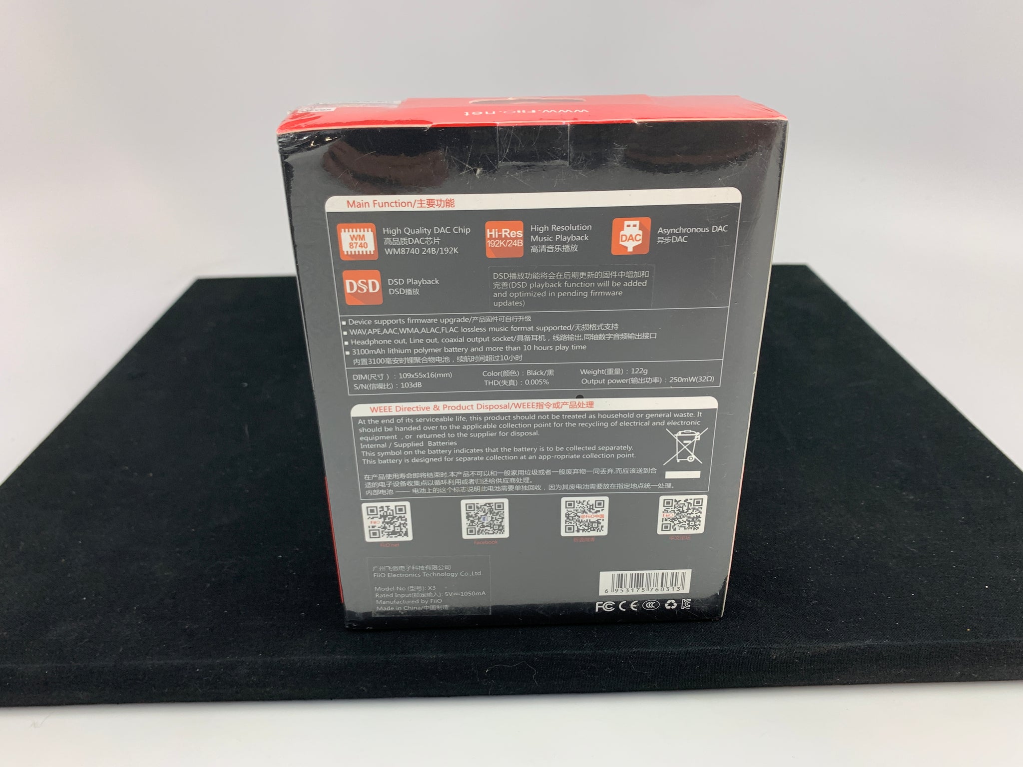 Here we have a Fiio X3 FIRST GEN High Resolution Music player. It is new old stock and comes in original sealed packaging. This model included the highly regarded Wolfson WM8740 professional DAC