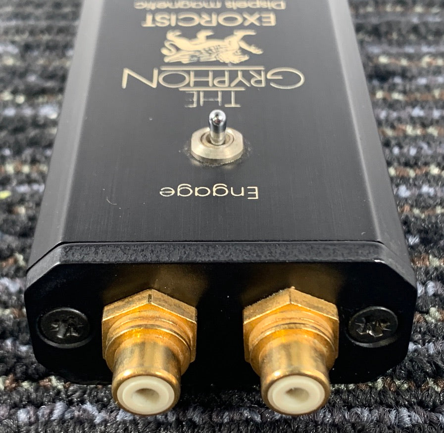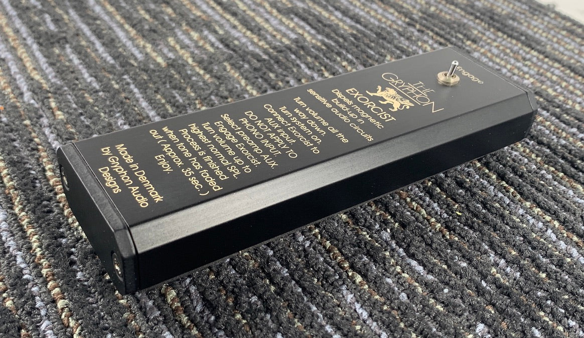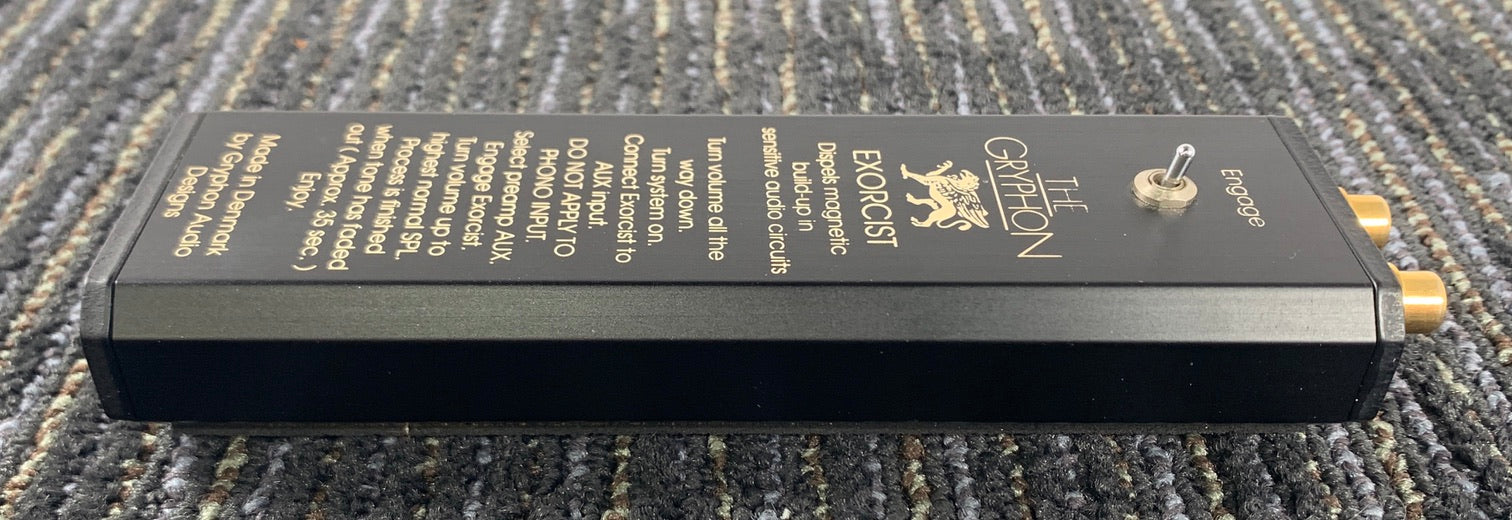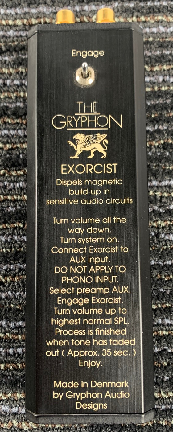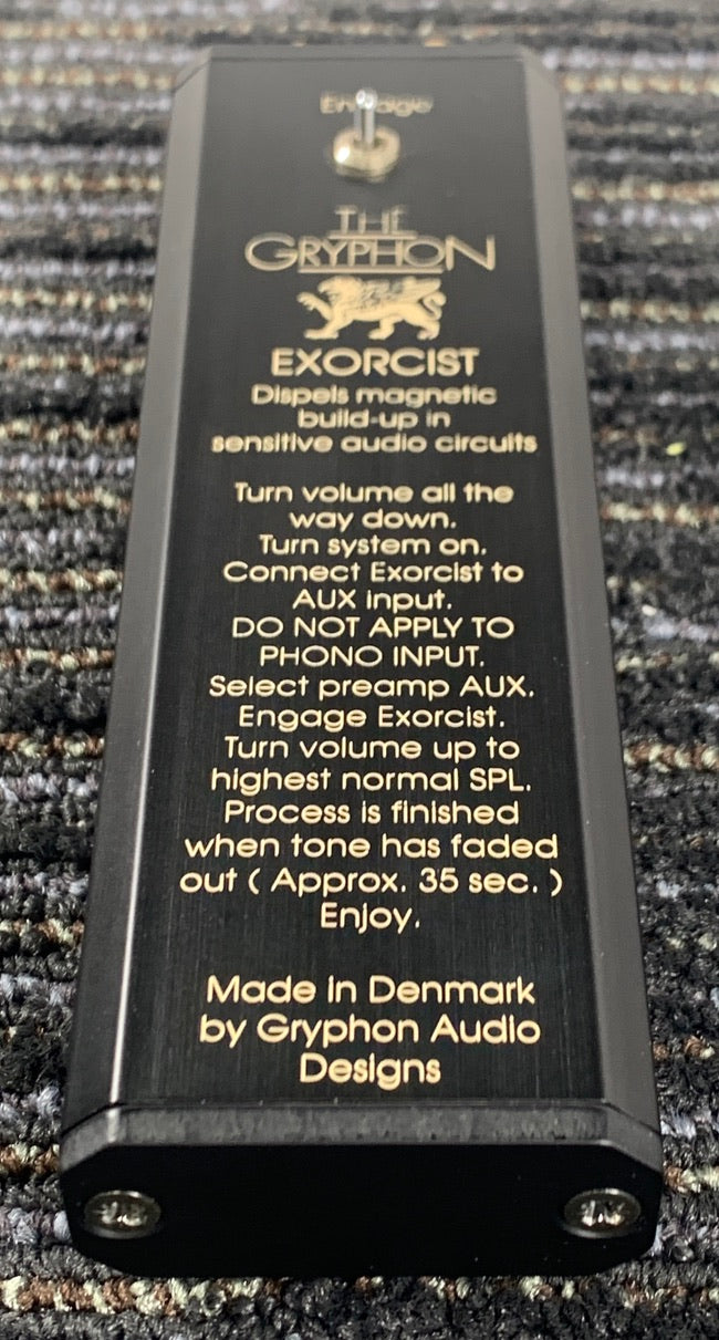 For sale we have The Gryphon Exorcist from Gryphon Audio Designs. It is a unit that according to the Manufacturer "Dispels magnetic buildup in sensitive audio circuits" We obtained this, and some other tweak items in a large system that we acquired. It was cleaned and tested and it is in perfect working order. It requires a 9-volt battery that is installed in the bottom of the unit. We will install a new battery prior to shipping.