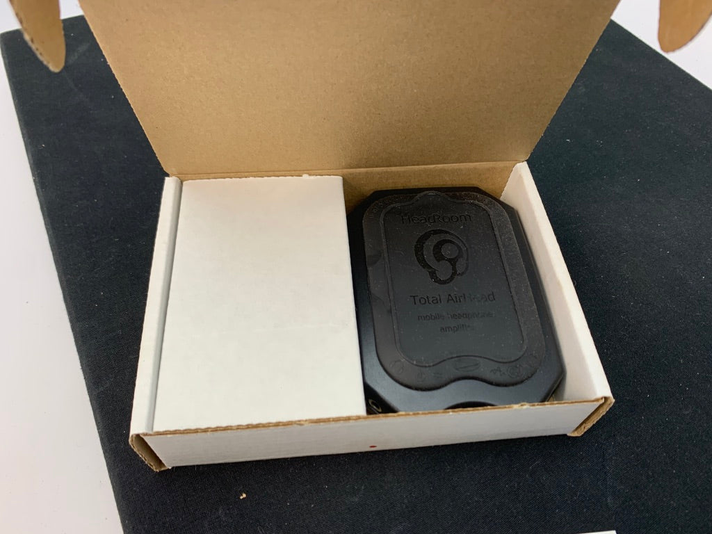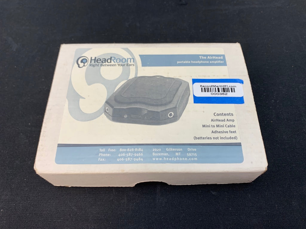 Here we have an NOS (New Old Stock) Headroom The Airhead portable headphone amp. Coming from our retail location, these were in storage for a number of years. Included is the amp, manual, accessories, and original box.