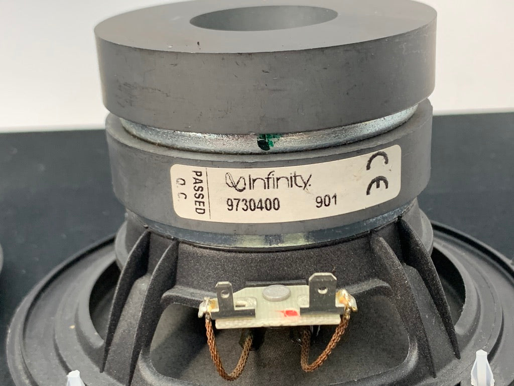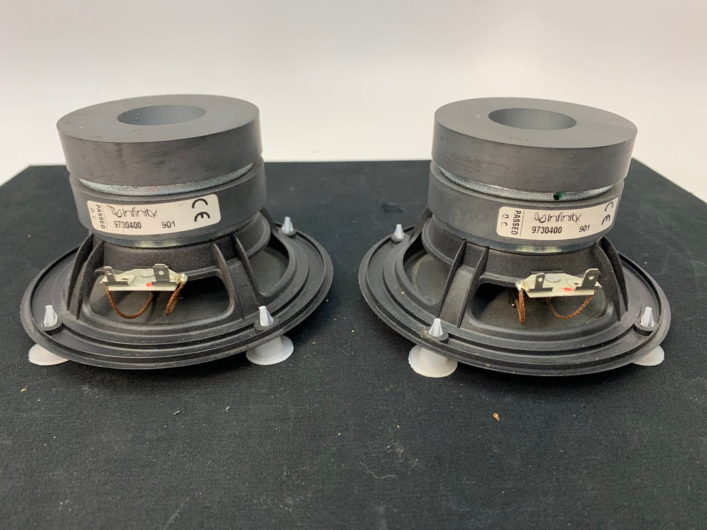 Here we have a pair of New Old Stock Infinity 4" midwoofer Speakers manufactured by Vifa. Part # 9730400. We don't have the boxes, but these speakers have never been used.
