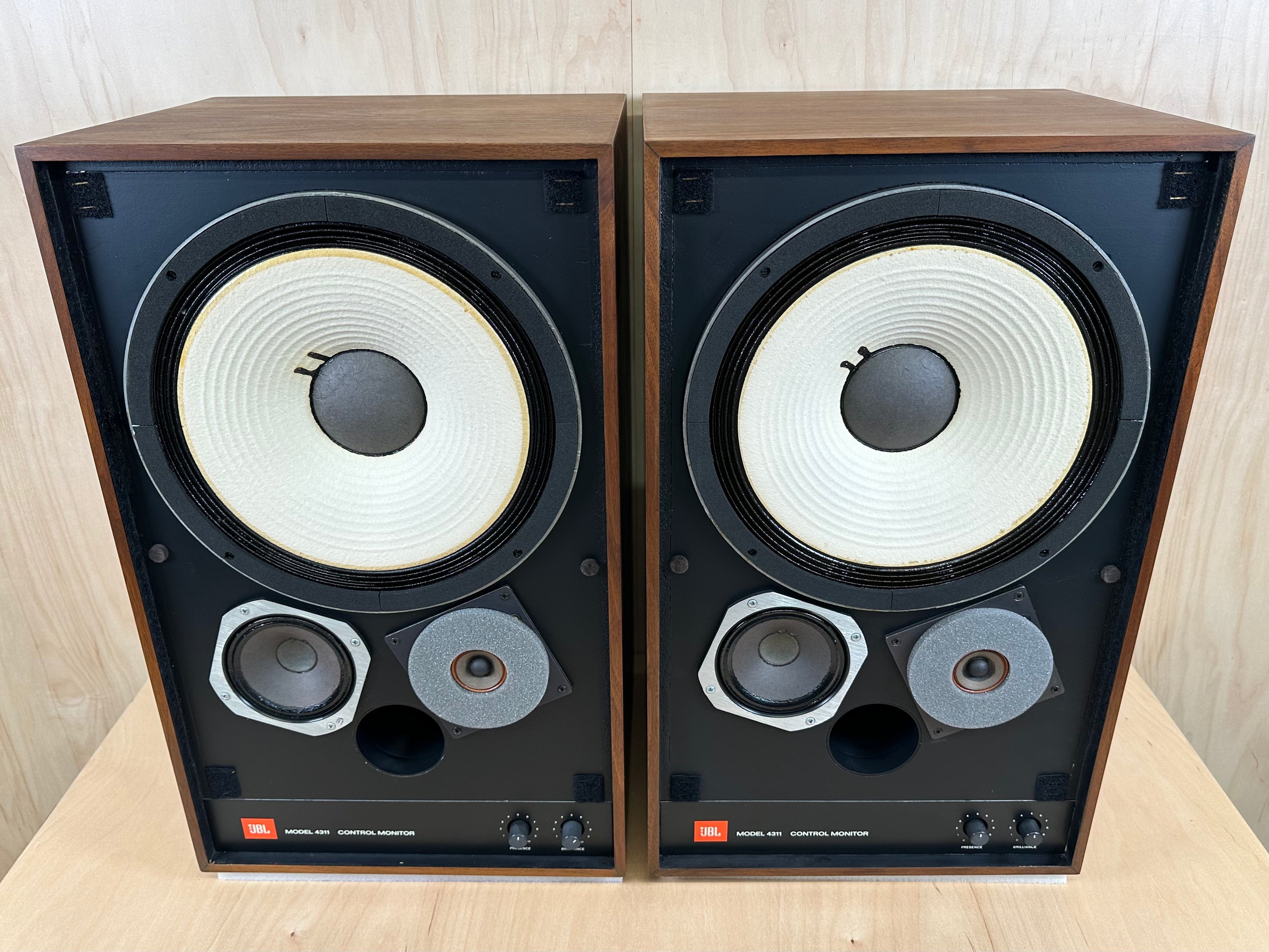 For sale, we have an extremely beautiful pair of JBL 4311 WXA consecutive numbered monitors. Serial numbers are 30529 & 30530. We originally went to pick up a pair of speakers at a large apartment in NYC. While there, there was a movie/stereo room that had an old custom built in system that was installed in the early 1970's . At the top of the wall unit there were speakers behind the custom install. We unscrewed the panels, and we found these speakers sitting behind. They had not been touched or seen the light of day since they were originally installed.