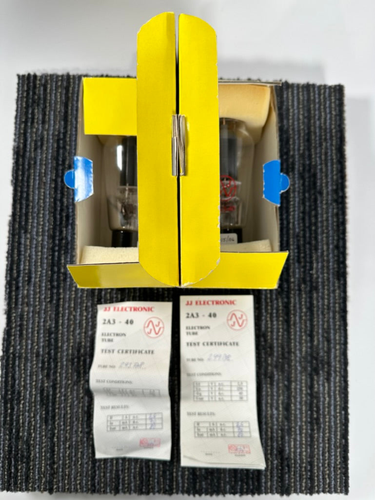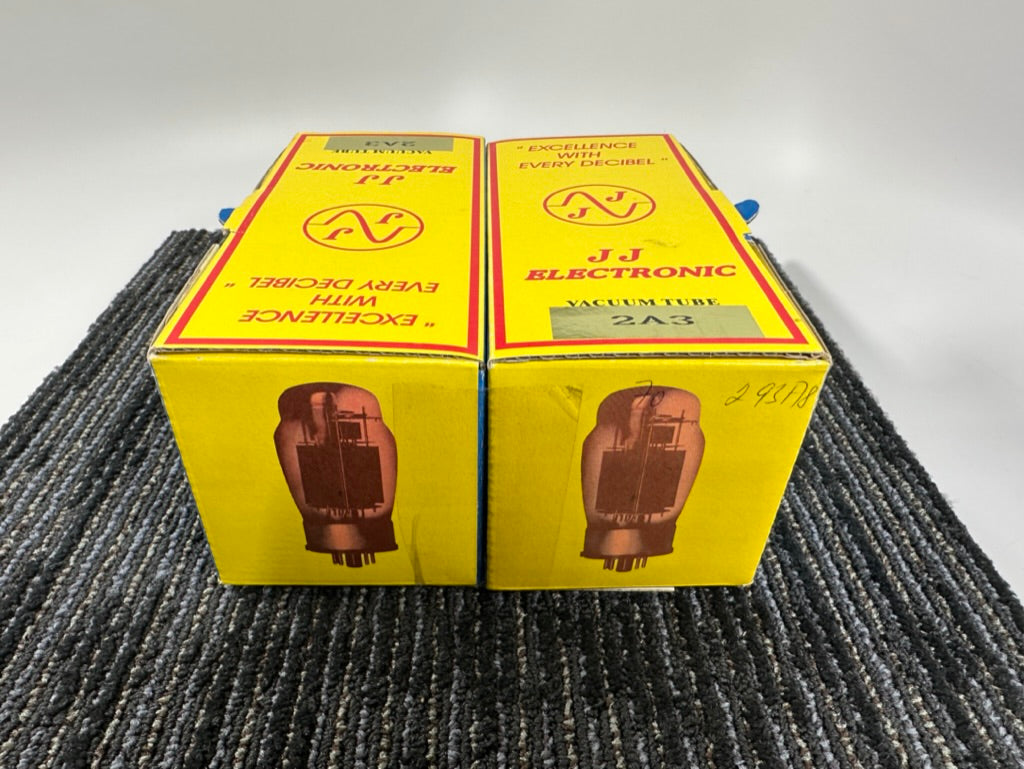 Up for sale is a pair of New Old Stock JJ Electronics 2A3 Factory Matched Pair Tubes. We acquired the tubes in a system that we purchased. These were bought as a backup pair and had never been used. We tested the tubes on our Amplitrex AT1000 tube tester to confirm that they were a new and matching pair, which it did.