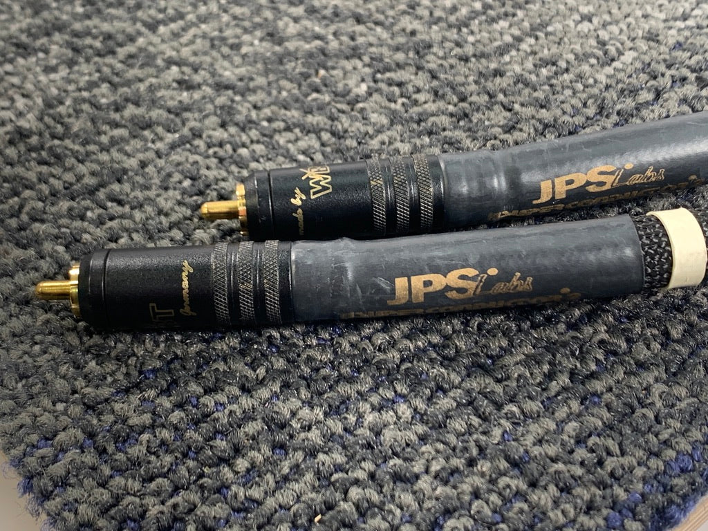 For sale is a 1 Meter pair of JPS Labs Superconductor 2 RCA Cables w/WBT-0144 RCA Fittings. Copper tube shielding, unique combination of ultra-pure aluminum and copper. Smooth, but detailed audio reproduction with an even keeled tonal balance. Very good physical condition, perfect working condition.