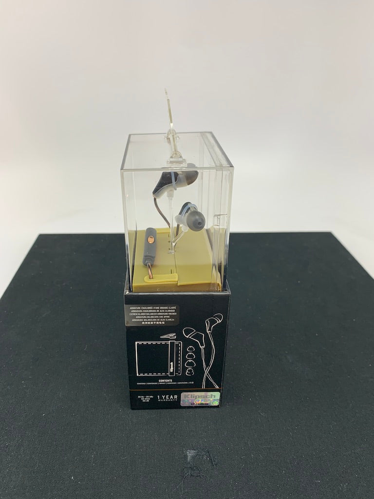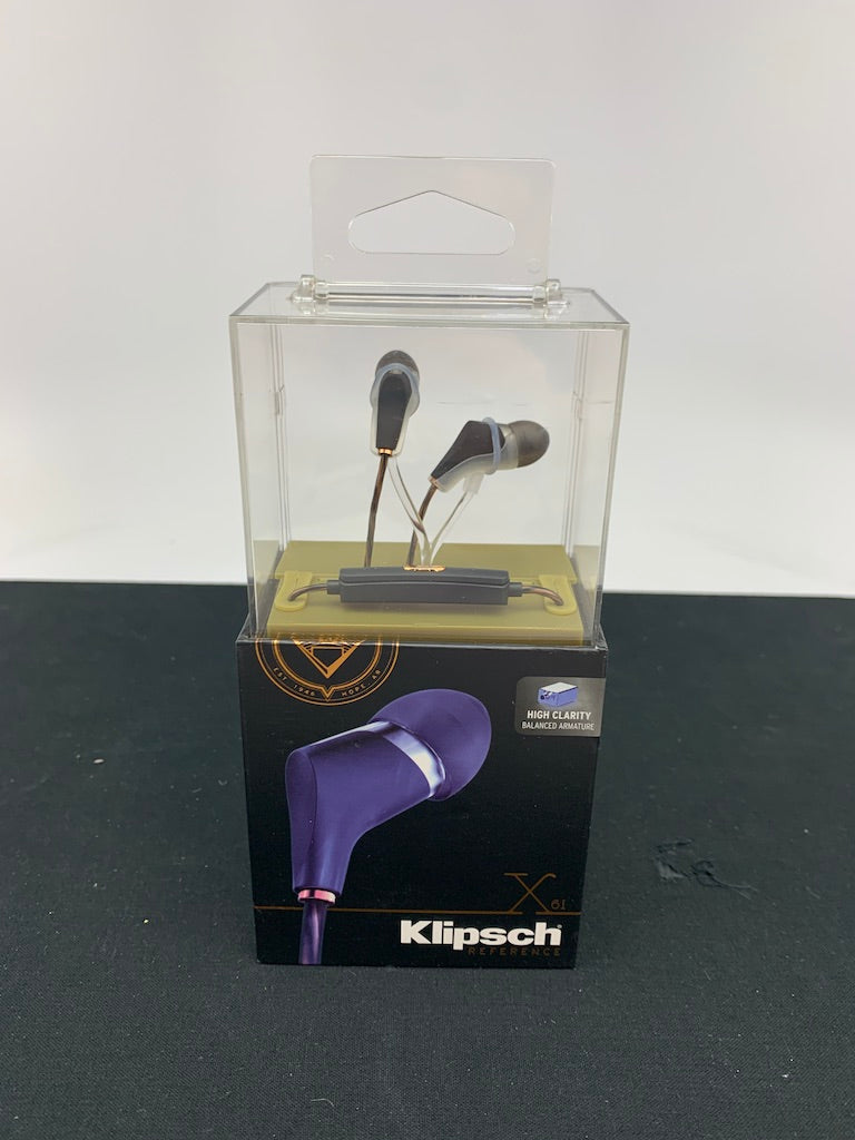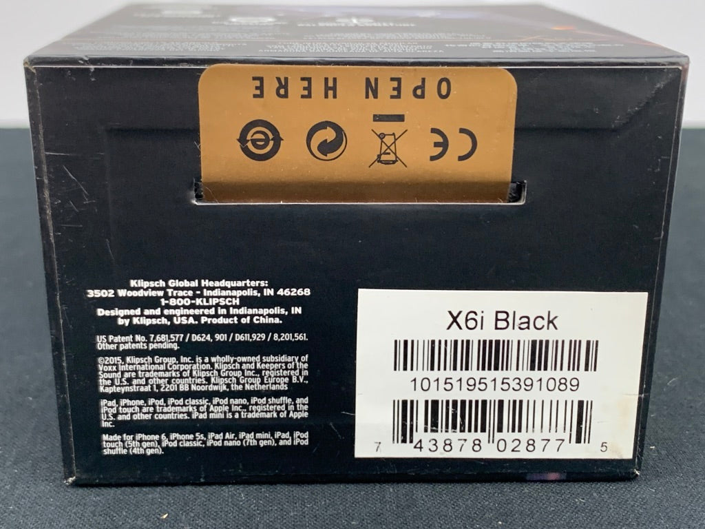 Here we have a pair of new Klipsch X6i Balanced Armature Reference Headphones. They come with an inline mic with volume control made for iPhones with the headphone jack. The mic works with many phones, but the volume control will only work with an iPhone that has the headphone jack, it won't work through the lightning adaptor. These are new old stock headphones from our retail location, the box is in great shape with only slight signs of wear from being on display. These are not B-Stock, they are in their original packaging.