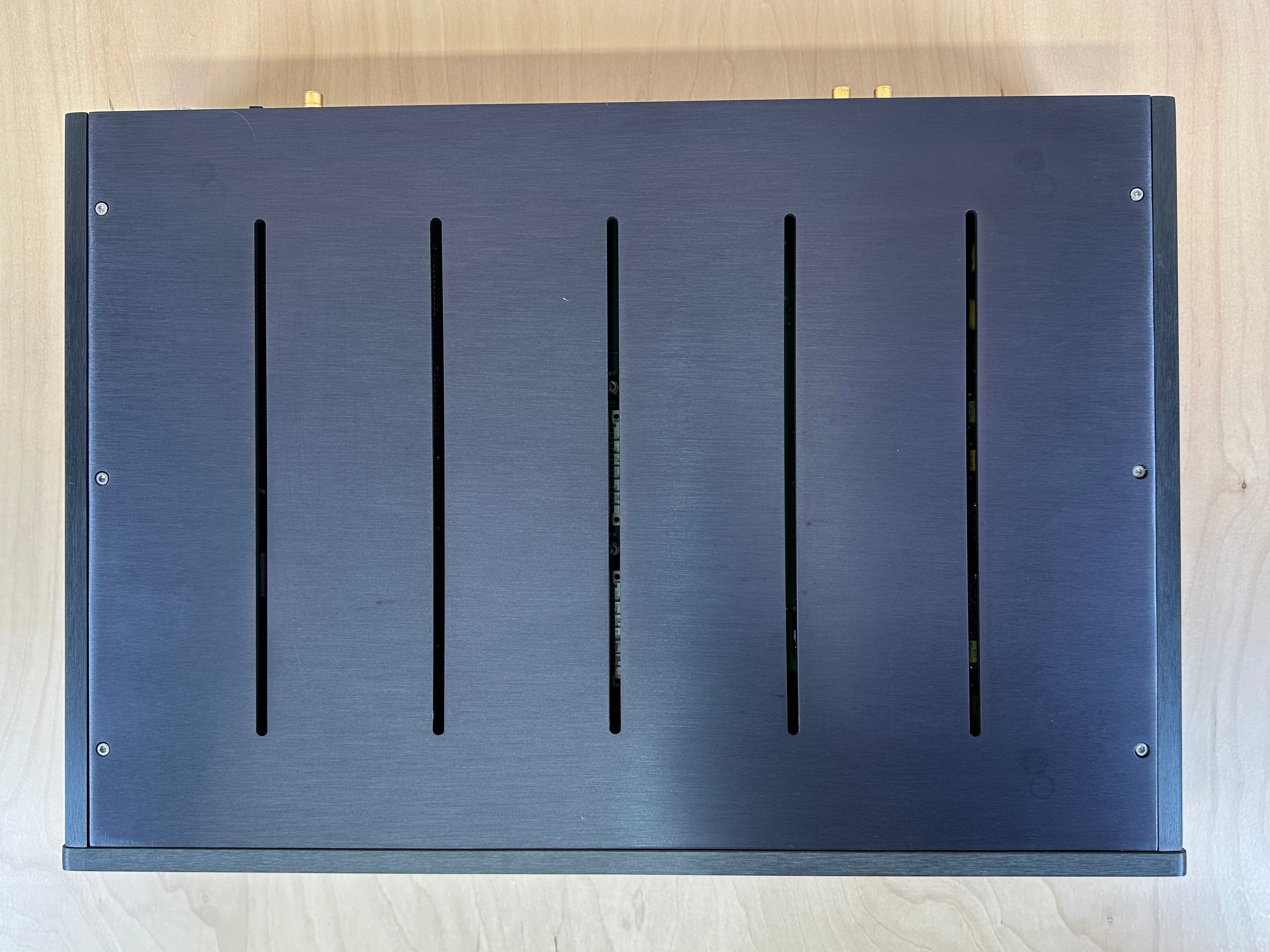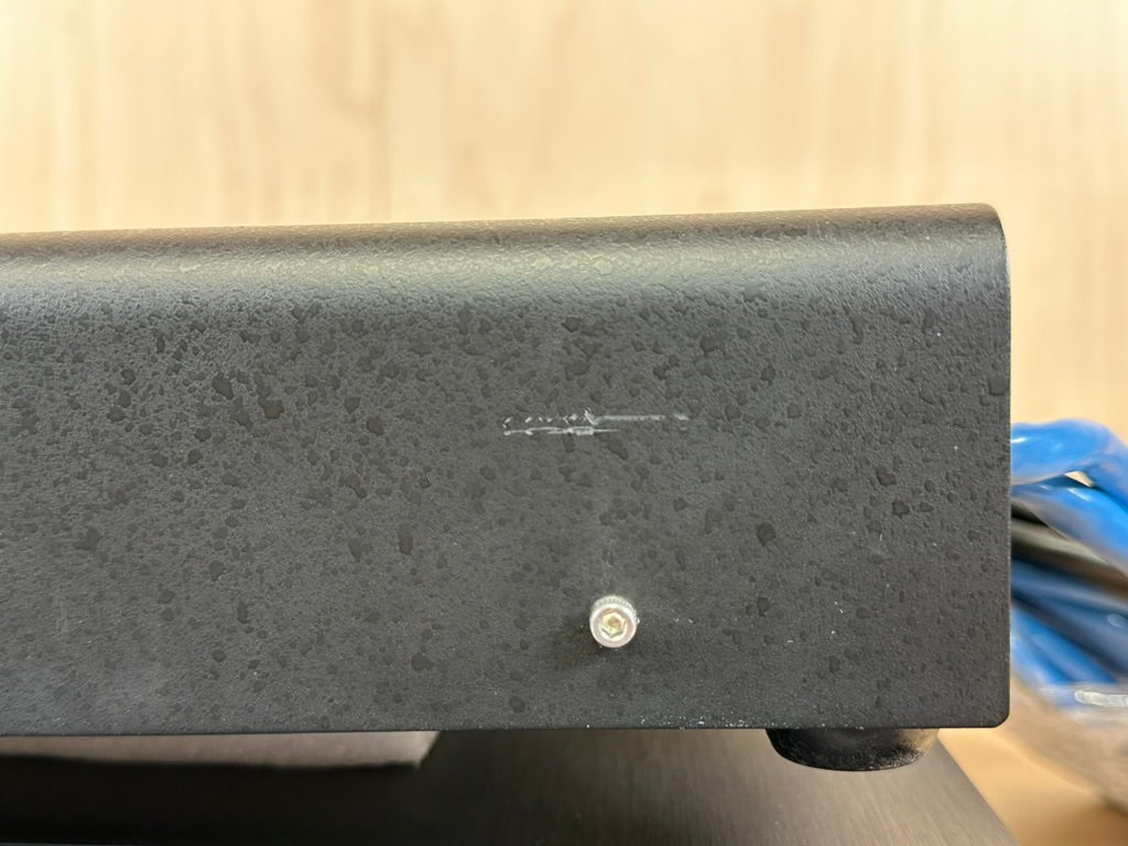 This 64 times oversampling digital processor is in perfect working order, and very good physical condition. On top of the unit there are some light scratches and some blemishes, including some round circle mark from the power supply resting on it. There is also a mark on the right side edge of the faceplate. On the power supply, there is a light scratch on the right rear side,and minor blemishes. There are no deep scratches and no dents. The unit presents itself very well. Please see pictures for further details.