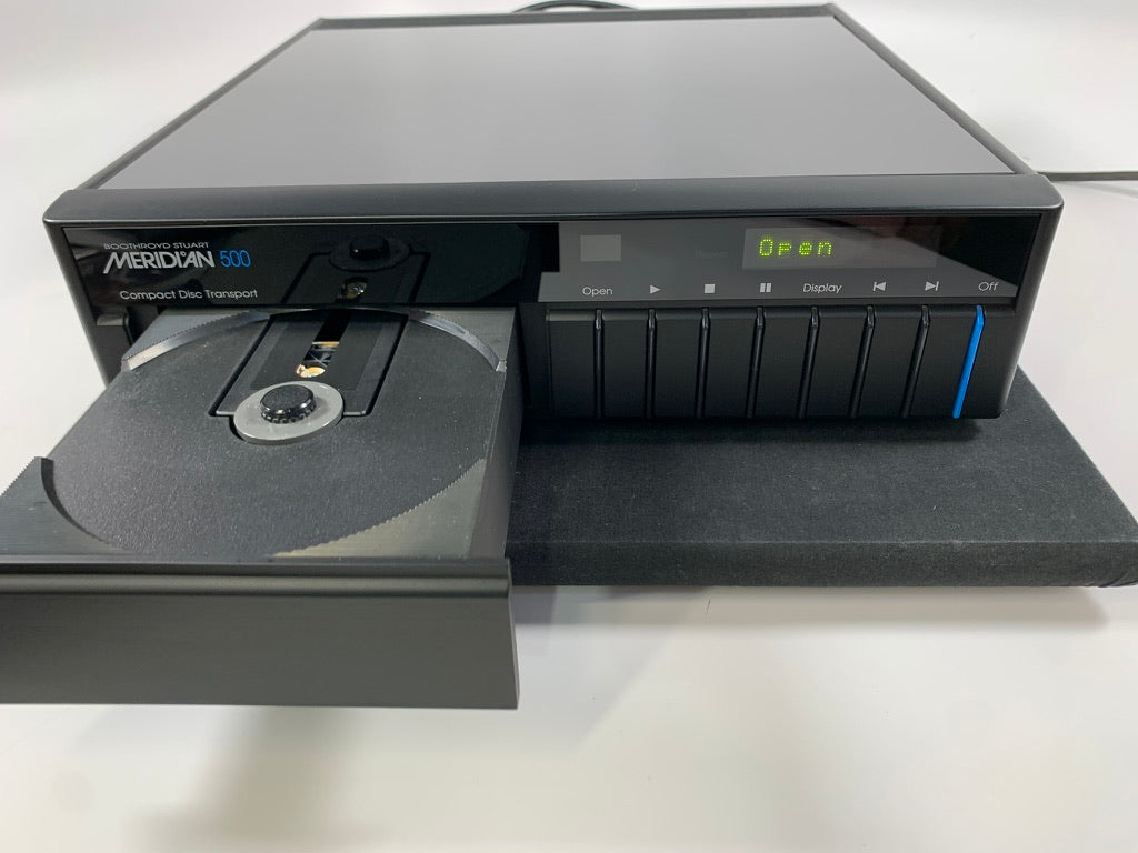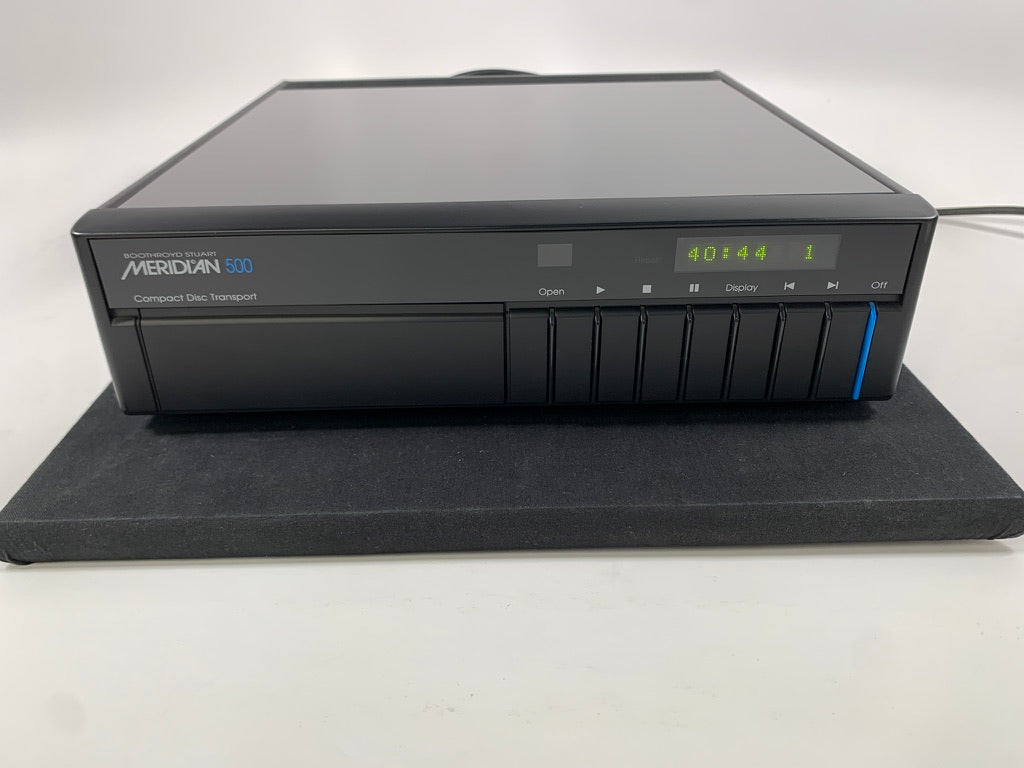 Here we have a great example of the Meridian 500 MK2 CD transport including it's original remote control from the original owner. This unit has led a pampered life in a custom wall unit in a beautiful house in Long Island NY. Physically and mechanically the unit is in mint condition. The unit has been lightly used and it shows. We opened the unit to service the guide bar for the tray, and to check the belt that opens and closes the tray. The belt is in excellent condition showing no signs of stretching or deterioration and functions as it should. The transports display is bright, the drawer operates smoothly and the unit responds promptly reading discs. The original remote control was taken apart, cleaned and serviced. It is in excellent condition and perfect working order. The battery compartment has no signs of corrosion.
