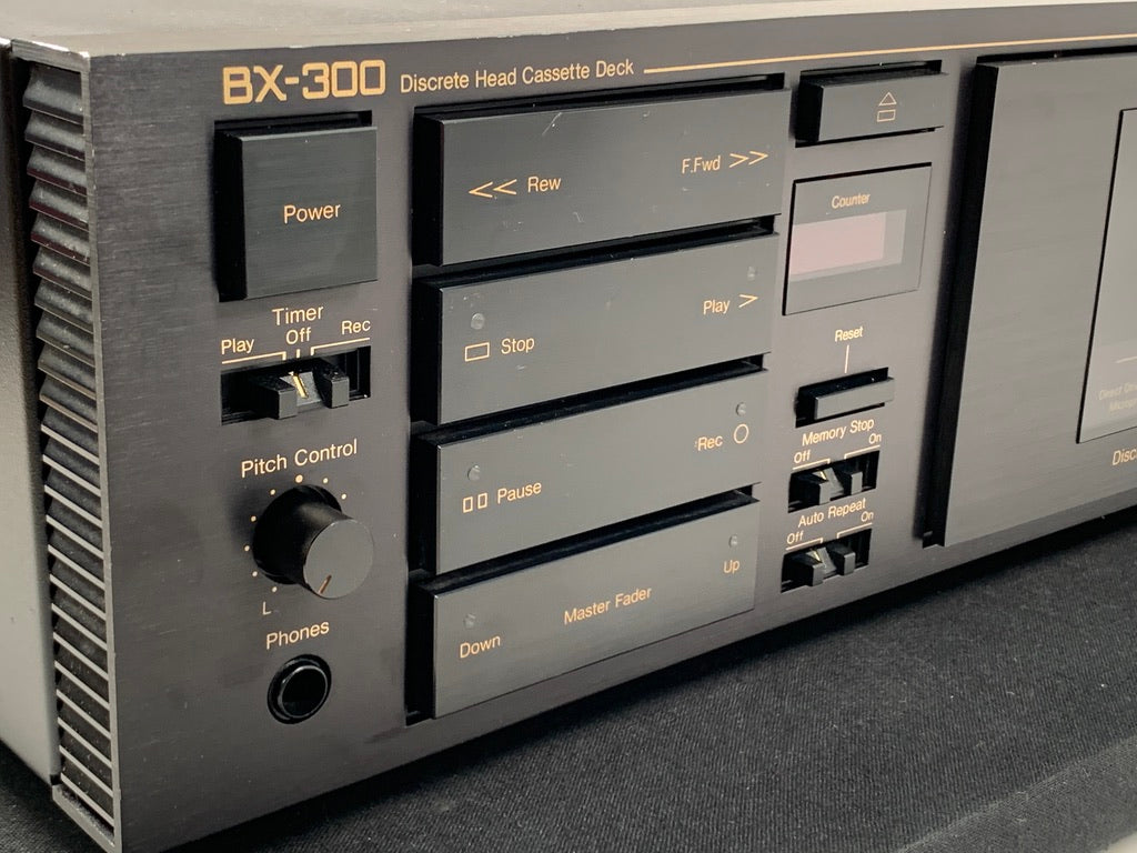 The BX-300 incorporates a wealth of original Nakamichi technology such as the Discrete Three Head system, a Direct Drive Asymmetrical, Diffused Resonance Dual Capstan Transport etc.
