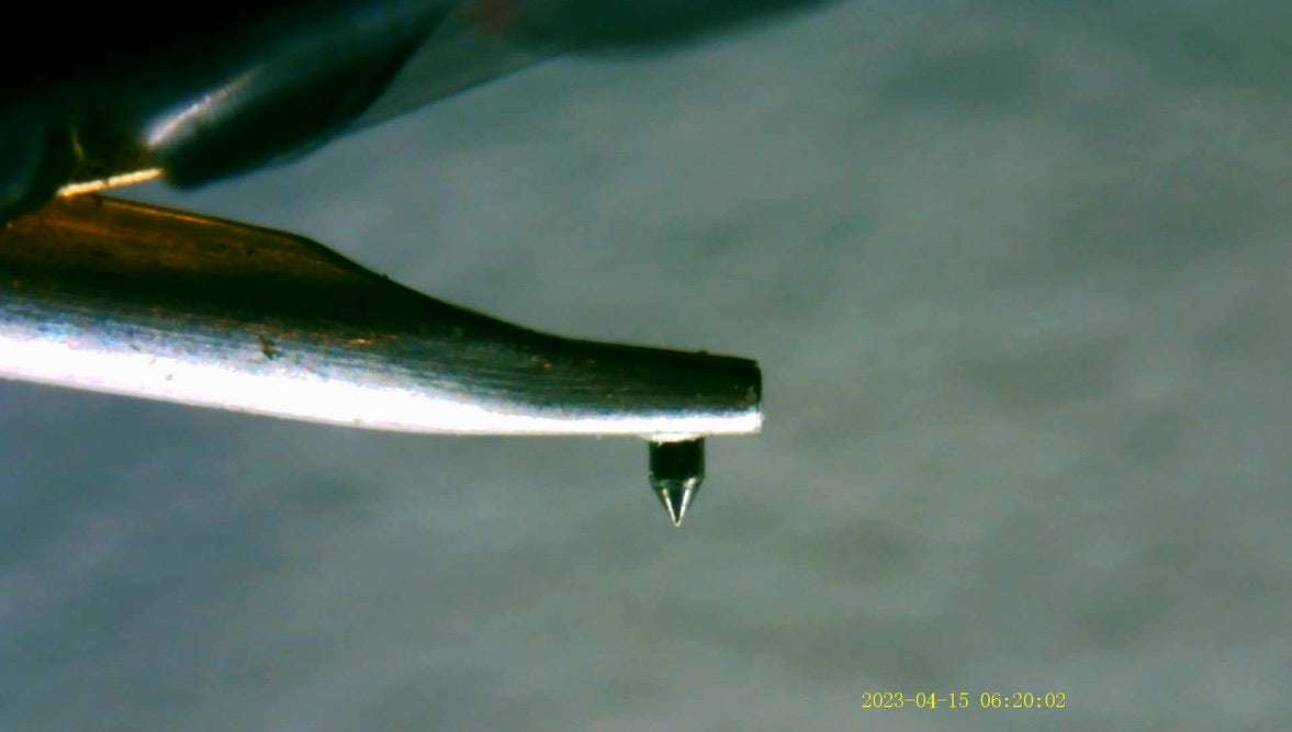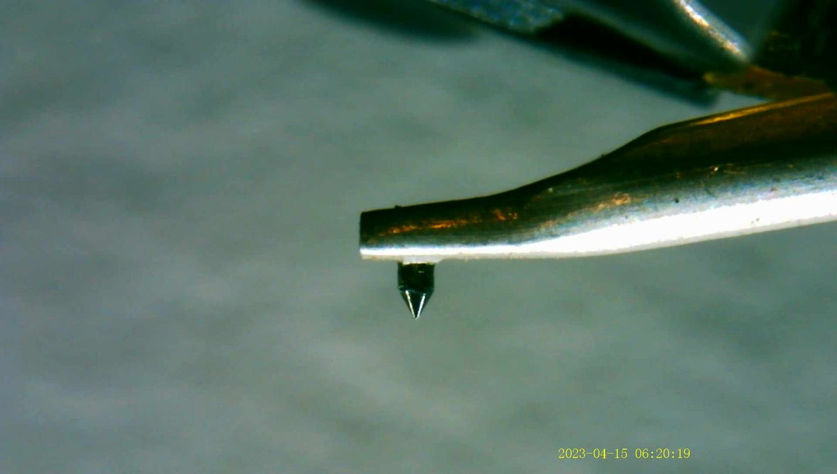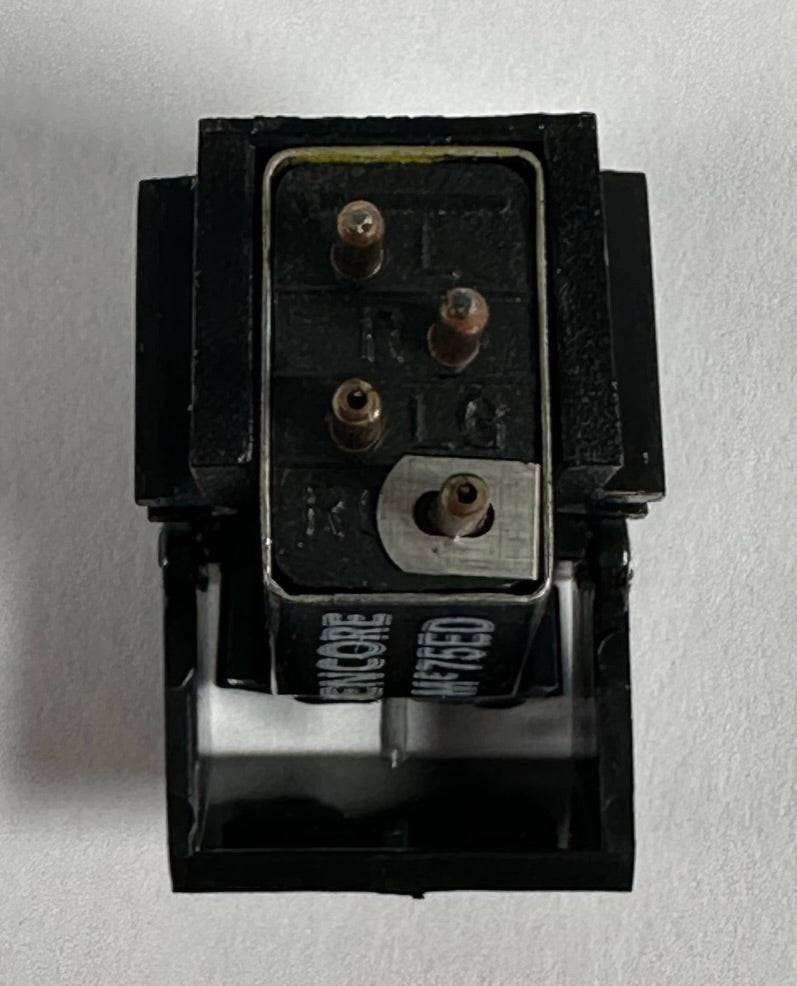 For sale, we have an NOS, or New Old Stock Shure Encore ME75ED Cartridge with ED T2 Stylus. While the box shows some wear, the cartridge and stylus are new. Left channel impedance measures 631 ohms, while the right channel measures 629 ohms. Comes with original box, inner box, manual, and sealed hardware bag. We updated the listing with some new pictures of the stylus taken under a microscope.