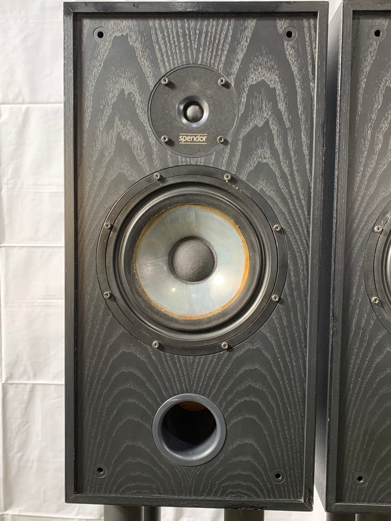 For your consideration is a rare pair of Spendor SP2/3 speakers in black ash. The units are consecutive serial numbers 001626, and 001627. They are in good working order and sound fantastic. Physically, the tweeters and woofers are in very good shape. Both tweeters show no signs of wear, and the domes are perfect. The Woofer surrounds and dust caps are in good shape. The woofer cones look a little different. One is more translucent than the other leading me to believe one may have been replaced or worked on. Both are in great shape. The cabinets have some wear, and the previous owner did some paint touchups that are mediocre, There are some scratches and blemishes, and the bottoms have a number of light scratch marks, but the units present themselves well. There is a corner ding on the front, bottom right side of one of the speakers. Both grills are intact and in good shape with some small blemishes and some edge rash in a few places. More pictures are available upon request.