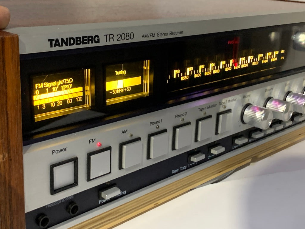 For sale, we have a vintage Tandberg TR 2080 Receiver. This unit has been cleaned, detailed, gone through and fully tested. It's a wonderful sounding receiver. All new LED lights were installed including the tuner pointer. There is a common problem with these units where the rear side panel screw clip breaks as it is made of plastic. We solved this issue by making new clips from solid aluminum stock. These new clips have been tapped to fit the original screws and are better than the originals. One of the new clips can be seen in the attached images. The cabinet sides has some small chips and blemishes, as well as a scuff on the left front edge. We tried to show all marks in the pictures. With that being said, the unit shows extremely well and is a beautiful unit with a very nice veneer.