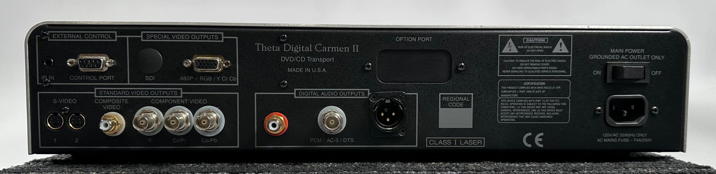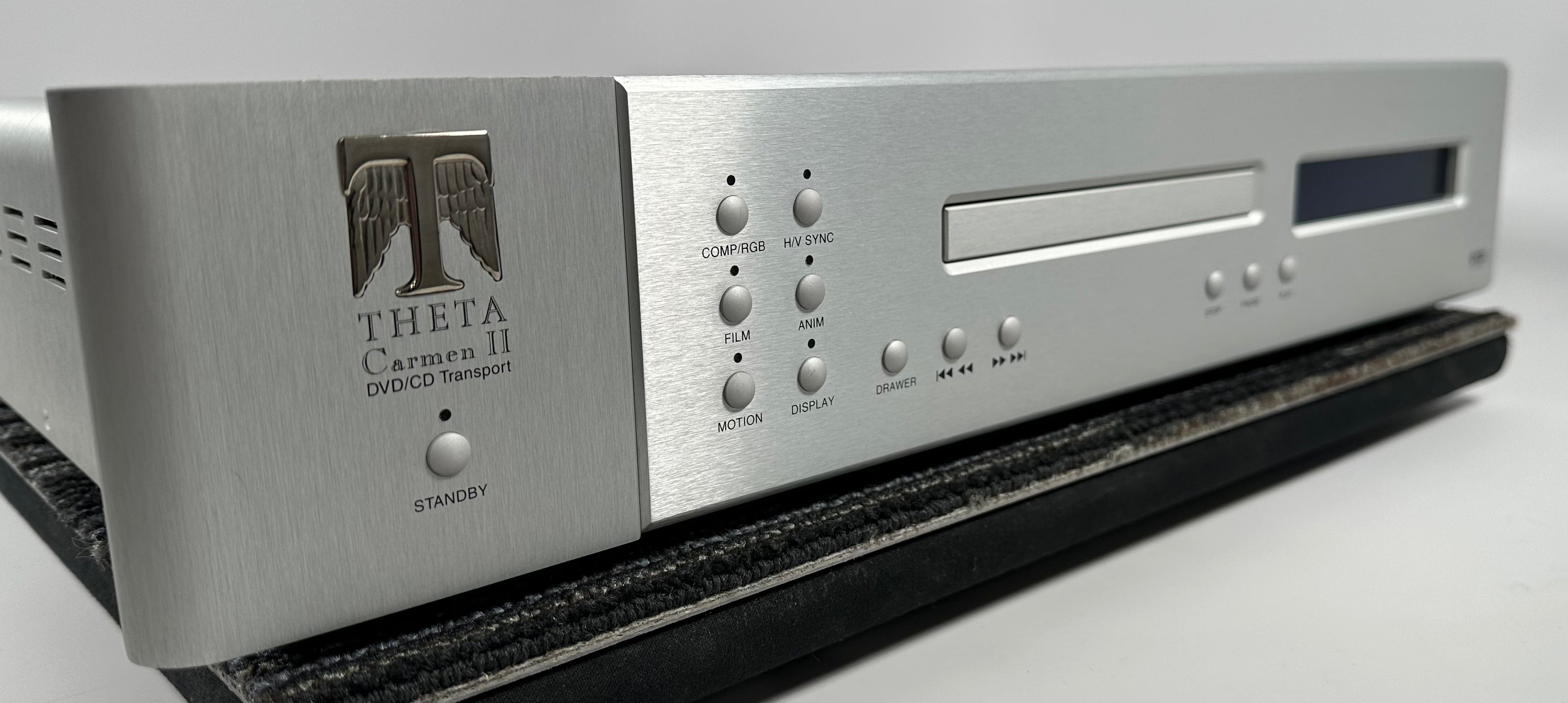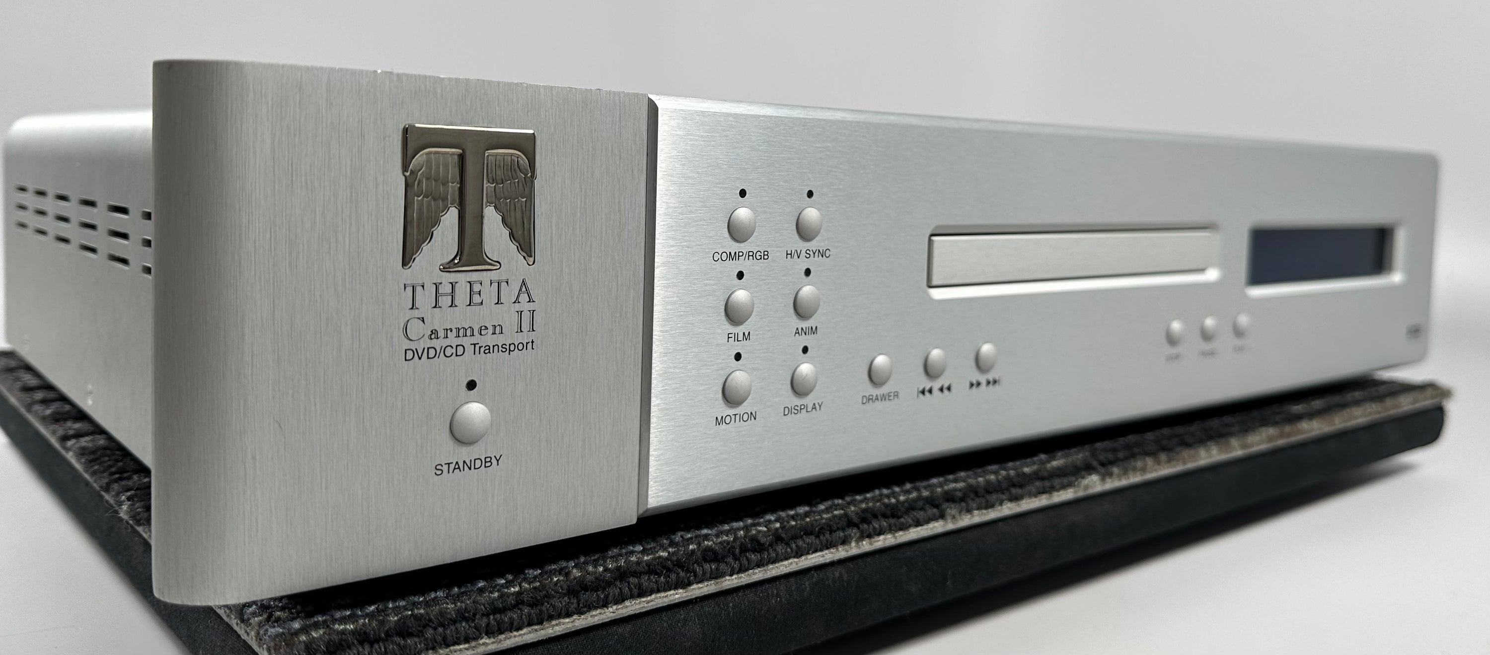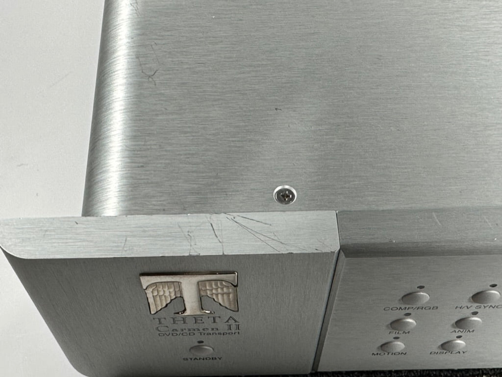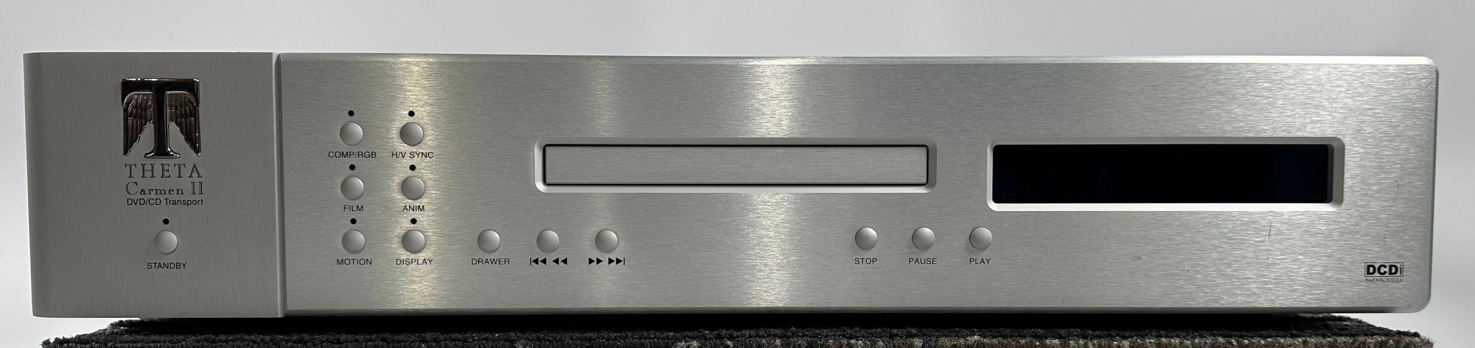 For sale, we have the extremely well built Theta Carmen II CD Transport. The unit came to us in need of work. We serviced the unit and sourced a brand new power supply. The unit is being sold as a CD transport only, as it does not read DVDs. The display is bright, and the original Theta remote is in perfect working order. Physically the player is in very good condition. There are several scratches on the left side of the faceplate, and some light scratches in other places. We tried to show these blemishes in the pictures listed. The unit has no dents, and has never been dropped. The faceplate is made of thick aluminum, as well as the top shroud. If you are looking at this unit we assume you know that it is a transport, and will require an external DAC to listen to CDs. See pictures for further details.