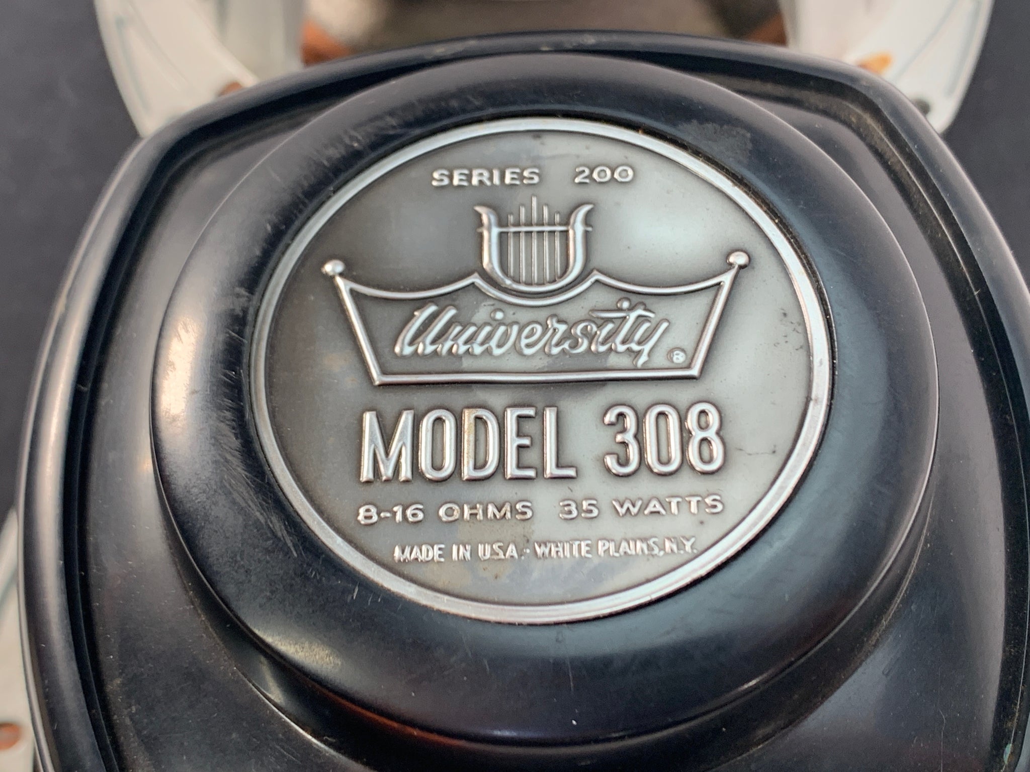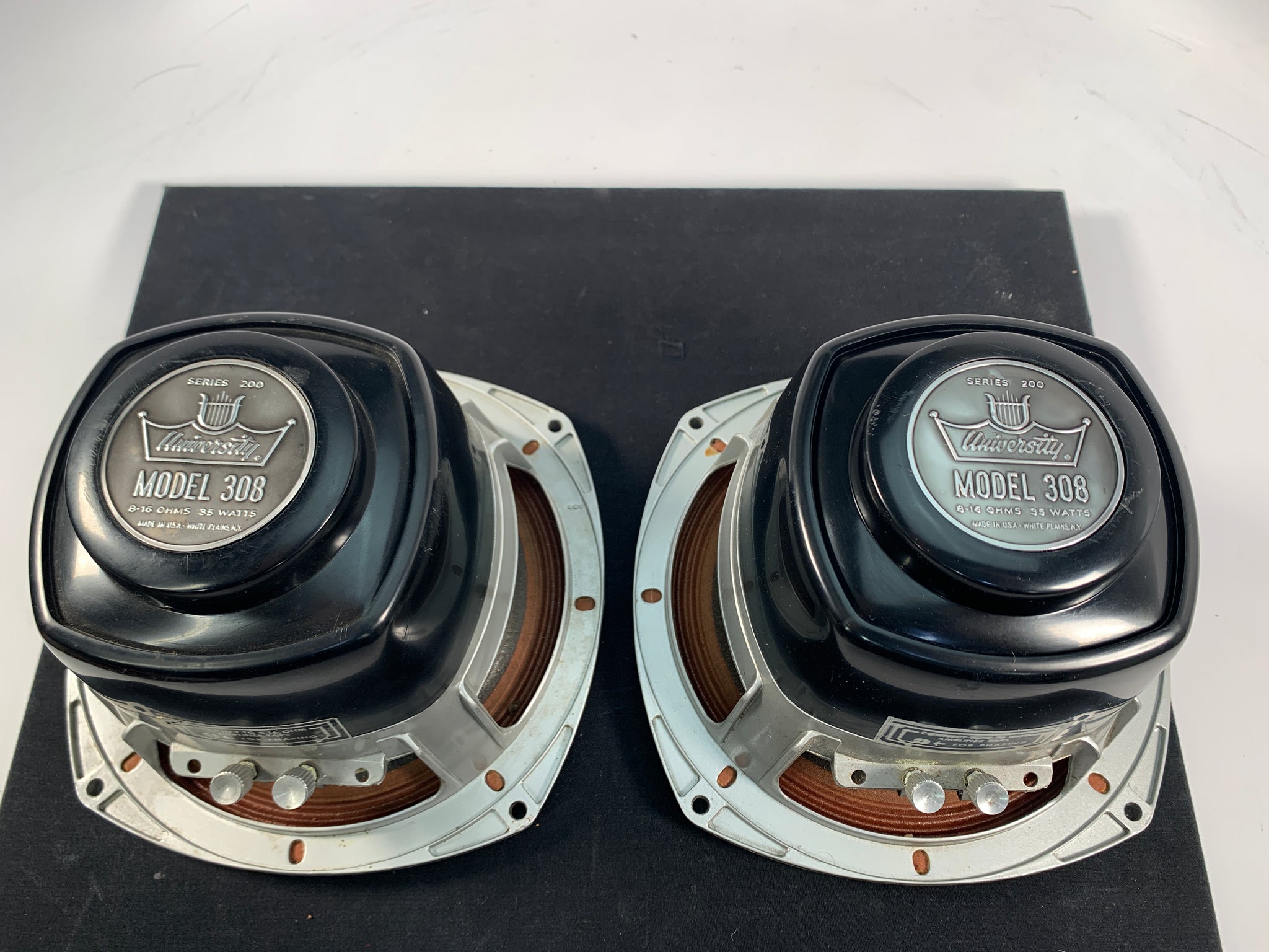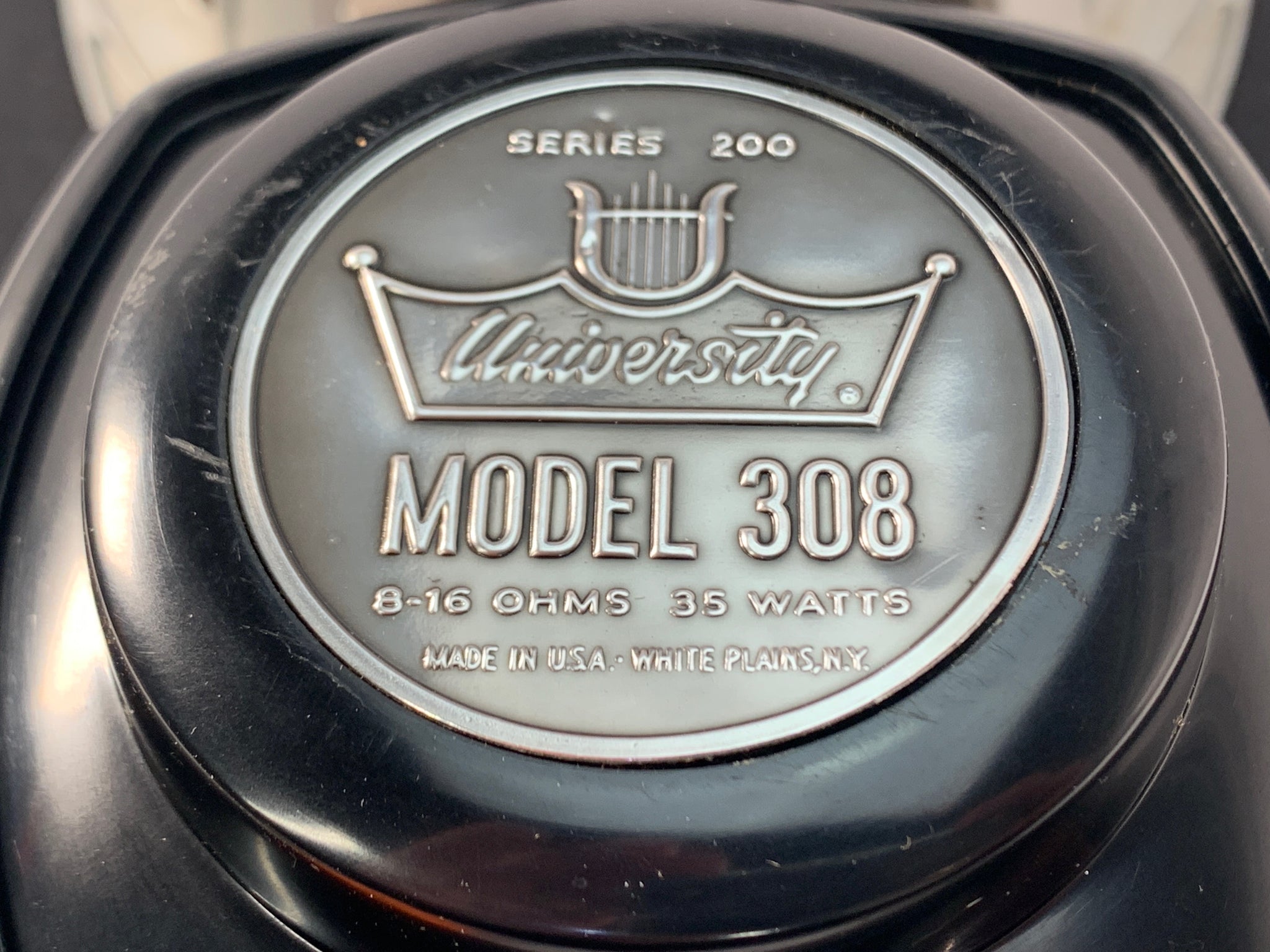 We obtained a collection of Vintage University speakers from the son of the original owner. In this listing we have a pair of University Model 308 Series 200 Speakers. Considering their age these speakers are in very good physical condition, with some minor scratches/scuffs on the backs of the drivers, as pictured. The speakers have been tested and are in working order. We did not change out the crossovers as we chose to keep them original and leave that to the next owner. The speakers are the versions that were made in White Plains, NY USA.