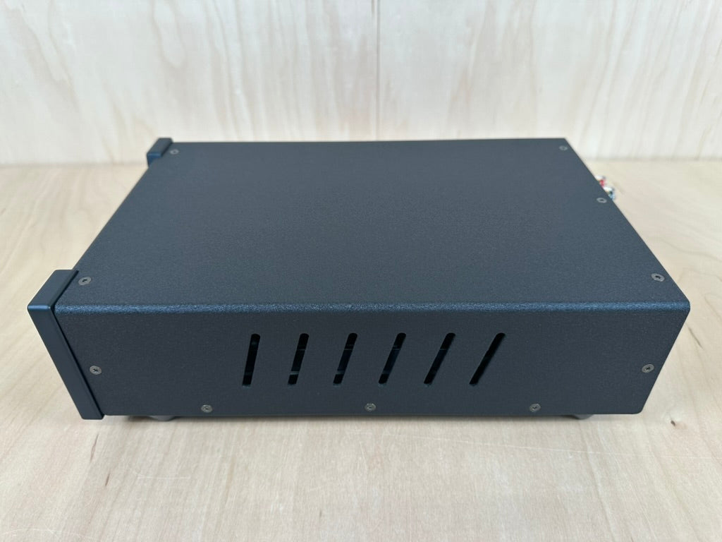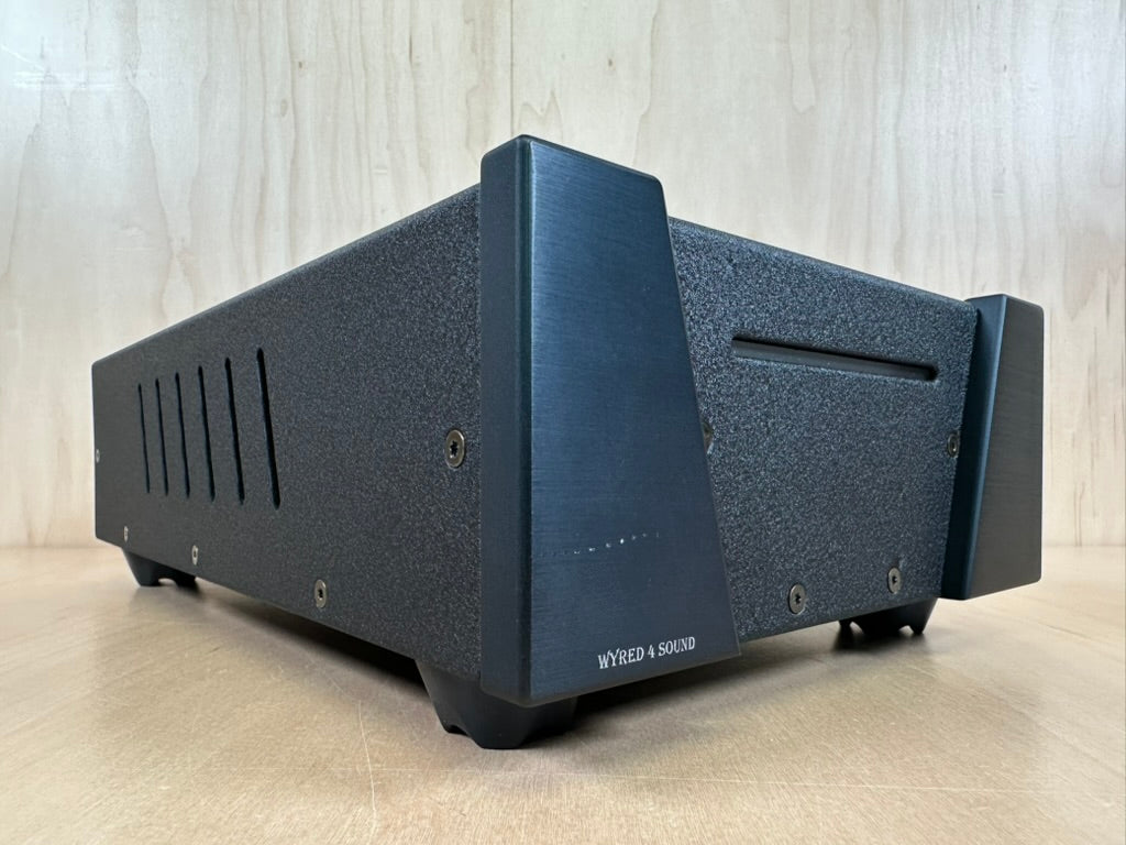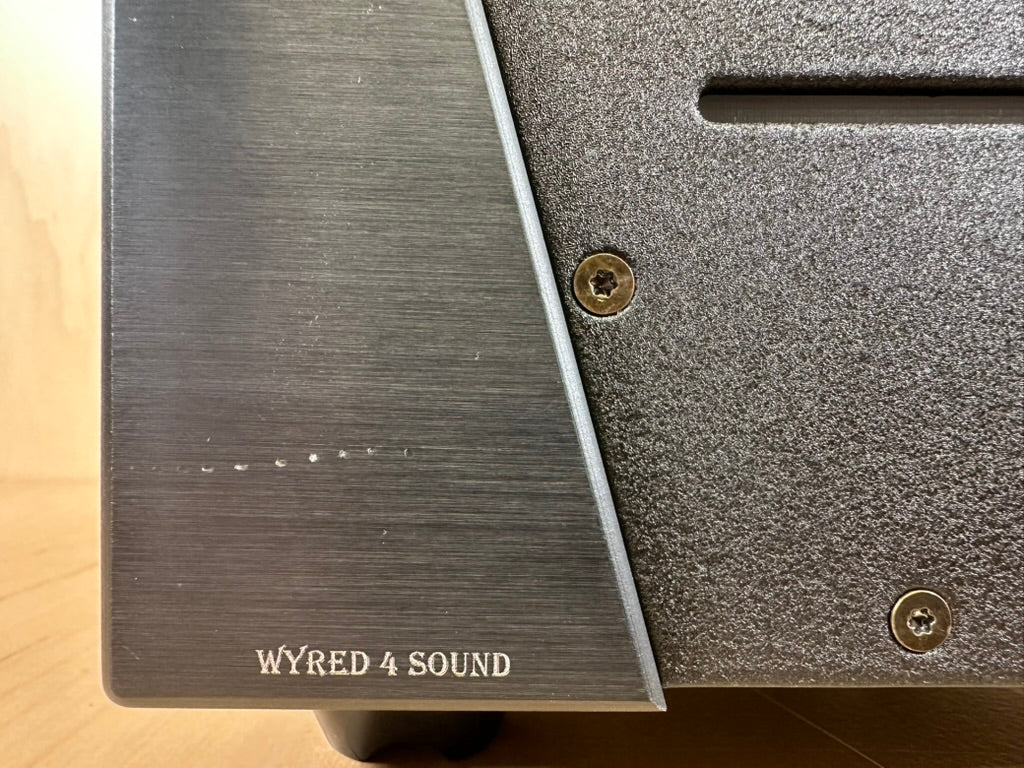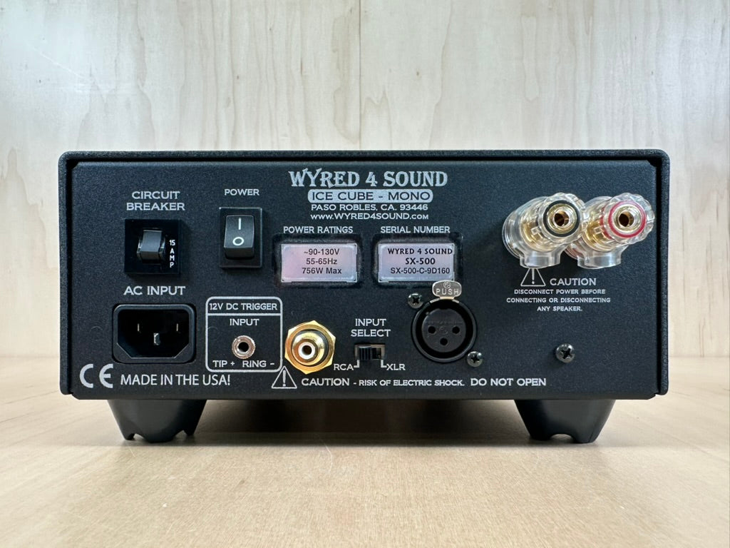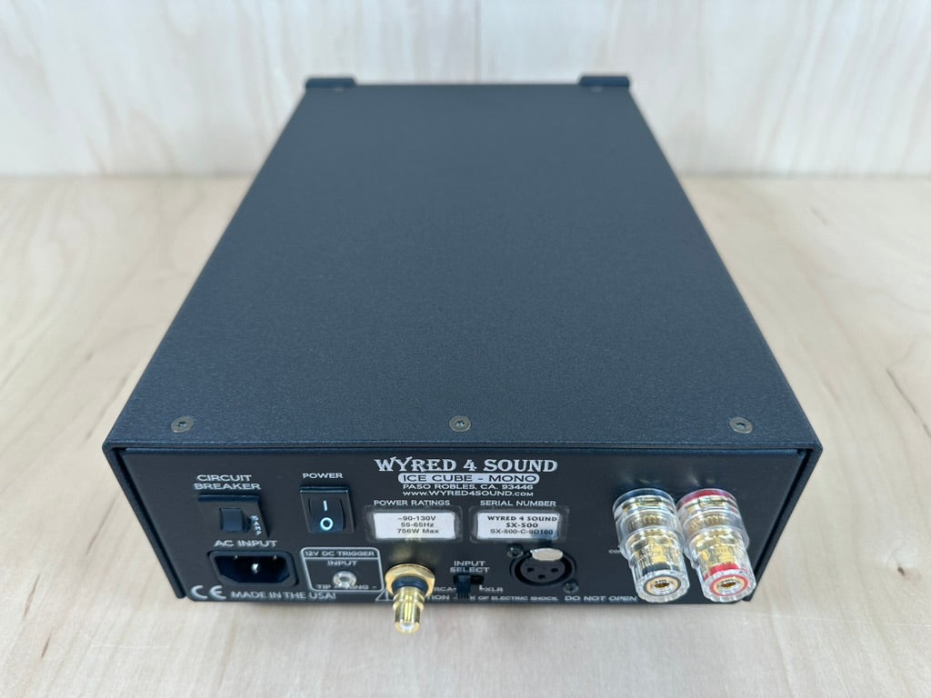 For sale, we have a Wyred 4 Sound Ice Cube Model SX-500 Mono Amplifier. The amp comes from the original owner, and it is in perfect working order. Physically the unit is in very good condition. There are a few marks on the front left side of the faceplate that can be seen in the pictures. There are no dents or other blemishes of note.