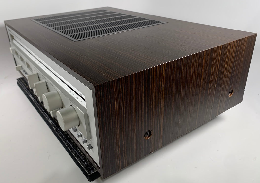 Here we have a fine looking vintage 1980 Yamaha CR-1040 receiver that we received from the original owner. The unit has been fully tested and gone over. All potentiometers and switches have been cleaned and then treated with Deoxit D5 and F5 respectively. We adjusted the DC offset and did a power meter adjustment to factory specifications. This unit is in perfect working order and very good physical condition. There are a few points to note on the cabinet, and they can be seen close up in the attached photos. Includes original owner's manual. All inputs including the tuner have been tested and are in good working order. The phono section sounds very good and has a selector for Moving Magnet and Moving Coil Cartridges. It's a beautiful looking receiver. Comes with original owners manual.